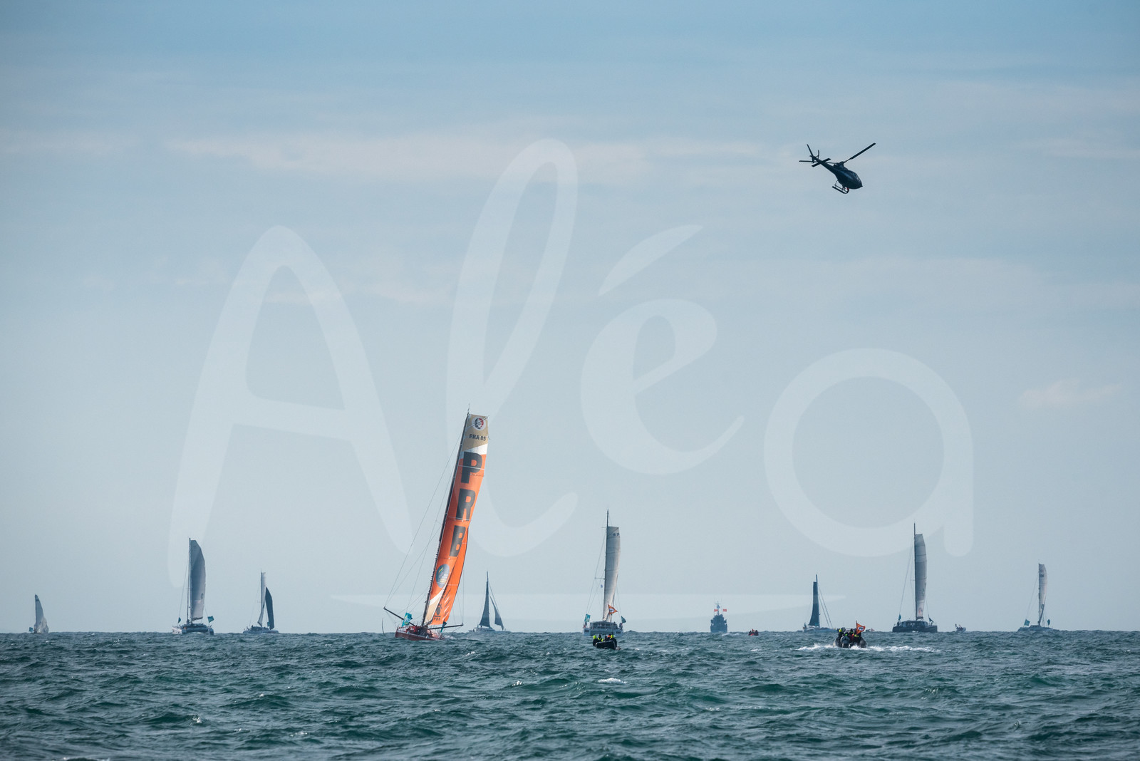 Description | General view illustration during start of the Route du Rhum 2018, on November 4th, 2018 in St-Malo, north Brittany, France - Photo Jean-Louis Carli / Alea |