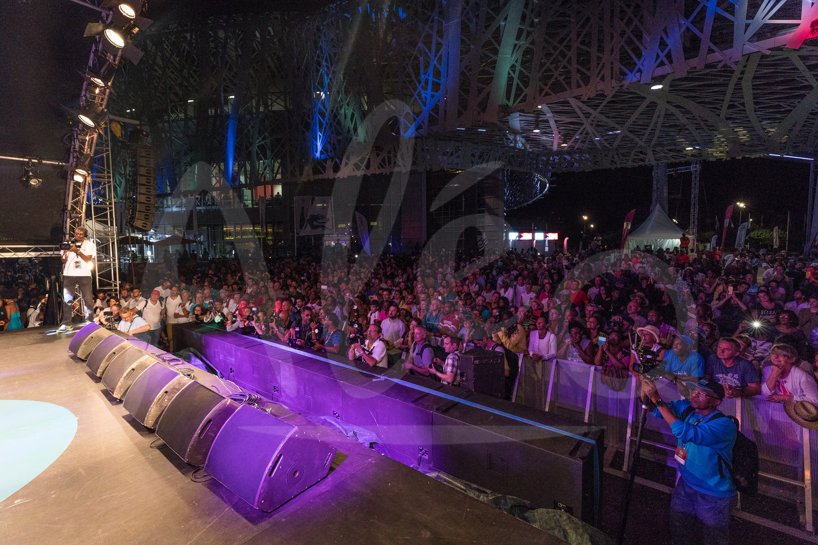 | Description | Celebration on podium for winner maxi trimaran IDEC Sport, skipper Francis Joyon - new record in 7d 14h 21mn 47sec, during arrival of the Route du Rhum 2018, on November 11th, 2018 in Pointe-a-Pitre, Guadeloupe, France - Photo Jean-Marie Liot / Alea |