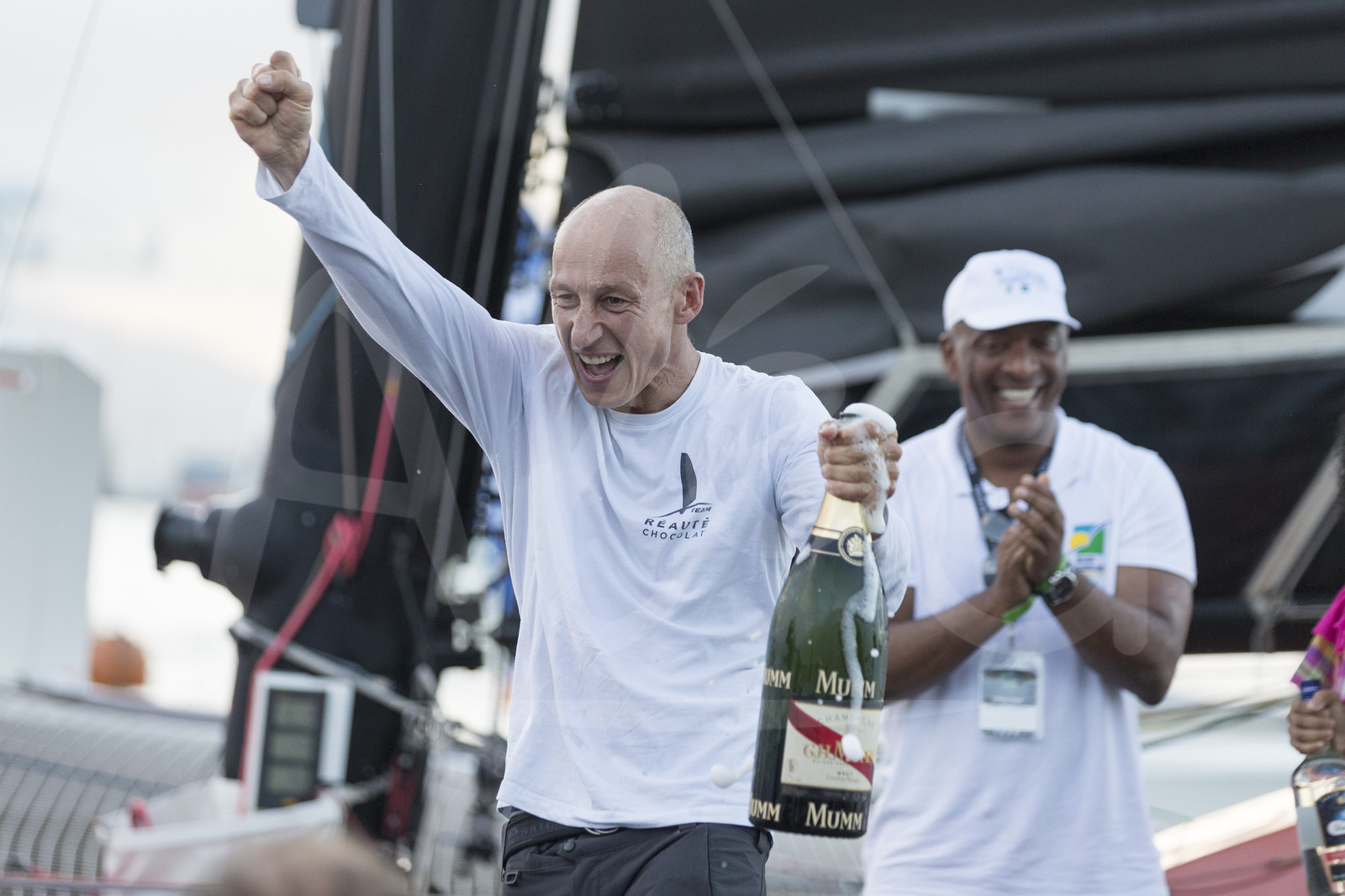 | Description | Category multi 50, celebration with champagne for winner Reaute Chocolat, skipper Armel Tripon, third overall, during arrival of the Route du Rhum 2018, on November 15th, 2018 in Pointe-a-Pitre, Guadeloupe, France - Photo Jean-Marie Liot / Alea. |