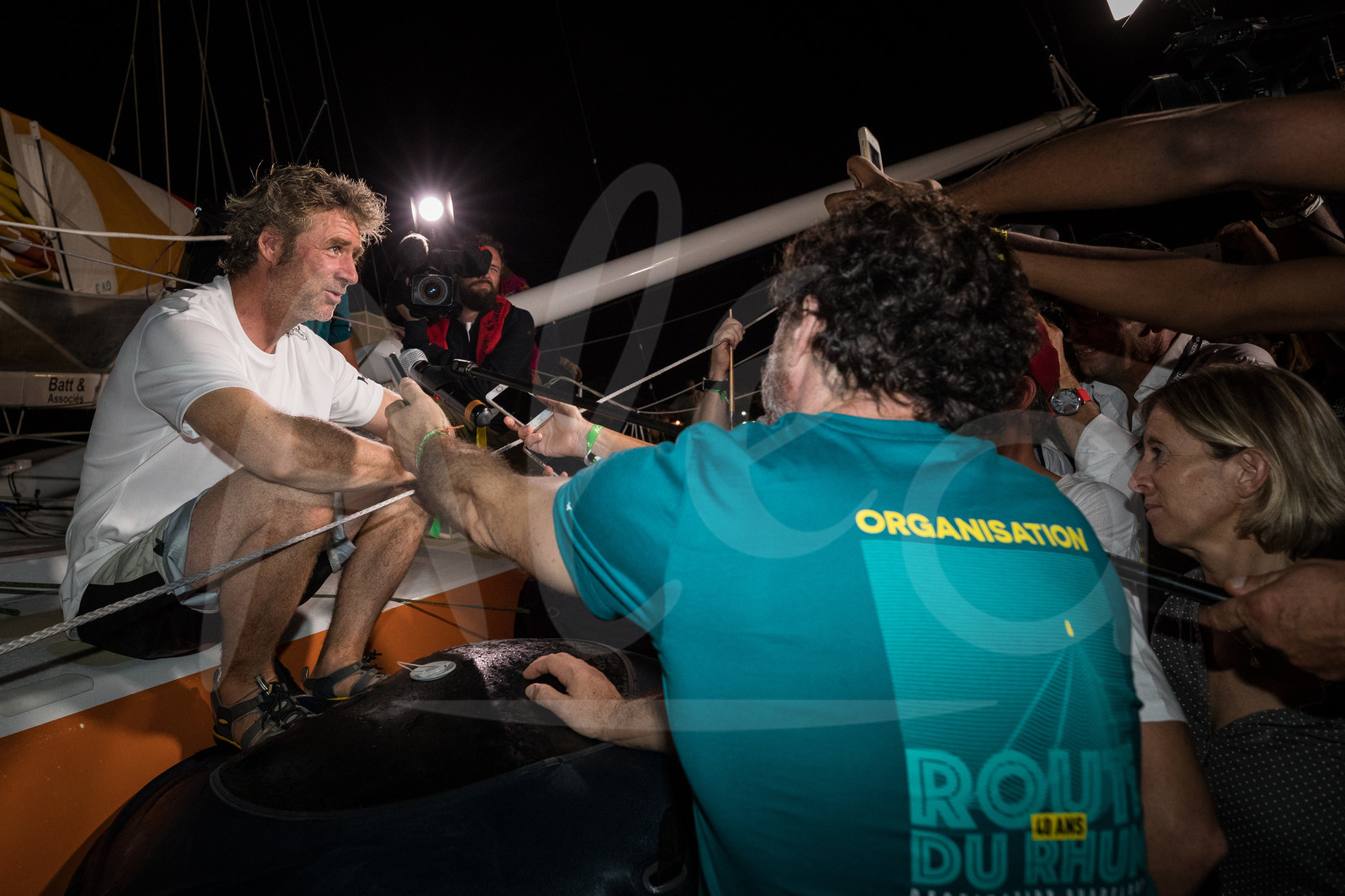 Description | Media for Ucar-St Michel, skipper Yann Elies, 2nd place in Category imoca, during arrival of the Route du Rhum 2018, on November 17th, 2018 in Pointe-a-Pitre, Guadeloupe, France - Photo Jean-Marie Liot / Alea |