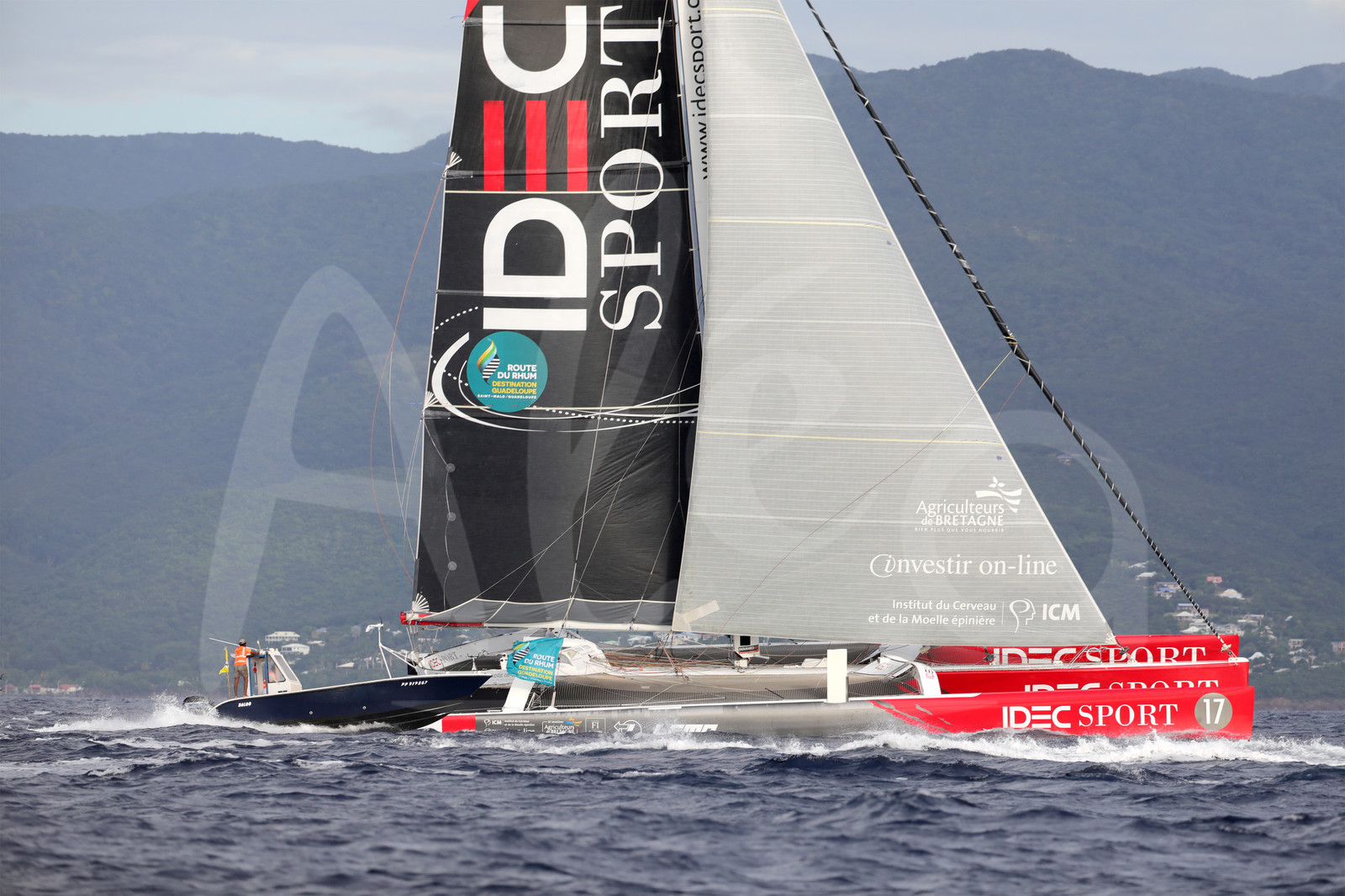 | Description | First images before finish for maxi trimaran IDEC Sport, skipper Francis Joyon, during arrival of the Route du Rhum 2018, on November 11th, 2018 in Pointe-a-Pitre, Guadeloupe, France - Photo Jean-Marie Liot / Alea |