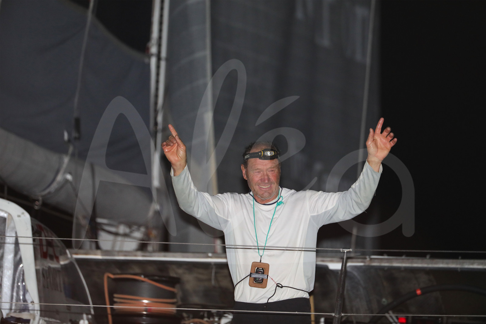 | Description | Celebration for winner maxi trimaran IDEC Sport, skipper Francis Joyon, and new record in 7d 14h 21mn 47sec during arrival of the Route du Rhum 2018, on November 11th, 2018 in Pointe-a-Pitre, Guadeloupe, France - Photo Jean-Marie Liot / Alea |