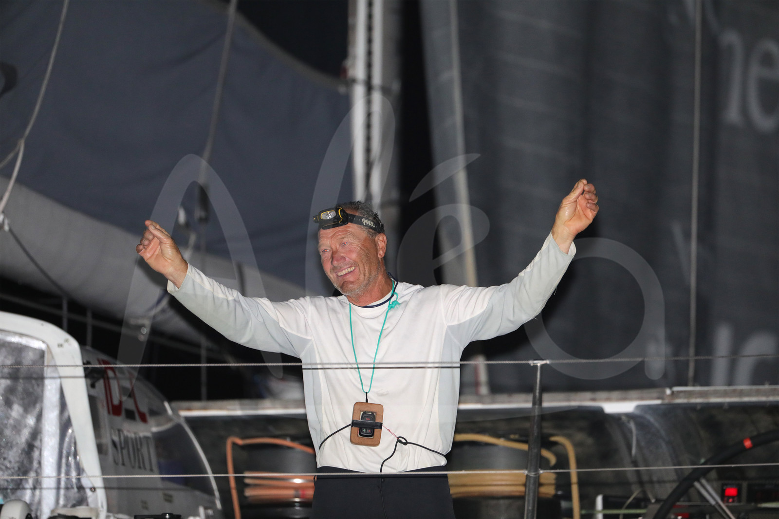 | Description | Celebration for winner maxi trimaran IDEC Sport, skipper Francis Joyon, and new record in 7d 14h 21mn 47sec during arrival of the Route du Rhum 2018, on November 11th, 2018 in Pointe-a-Pitre, Guadeloupe, France - Photo Jean-Marie Liot / Alea |