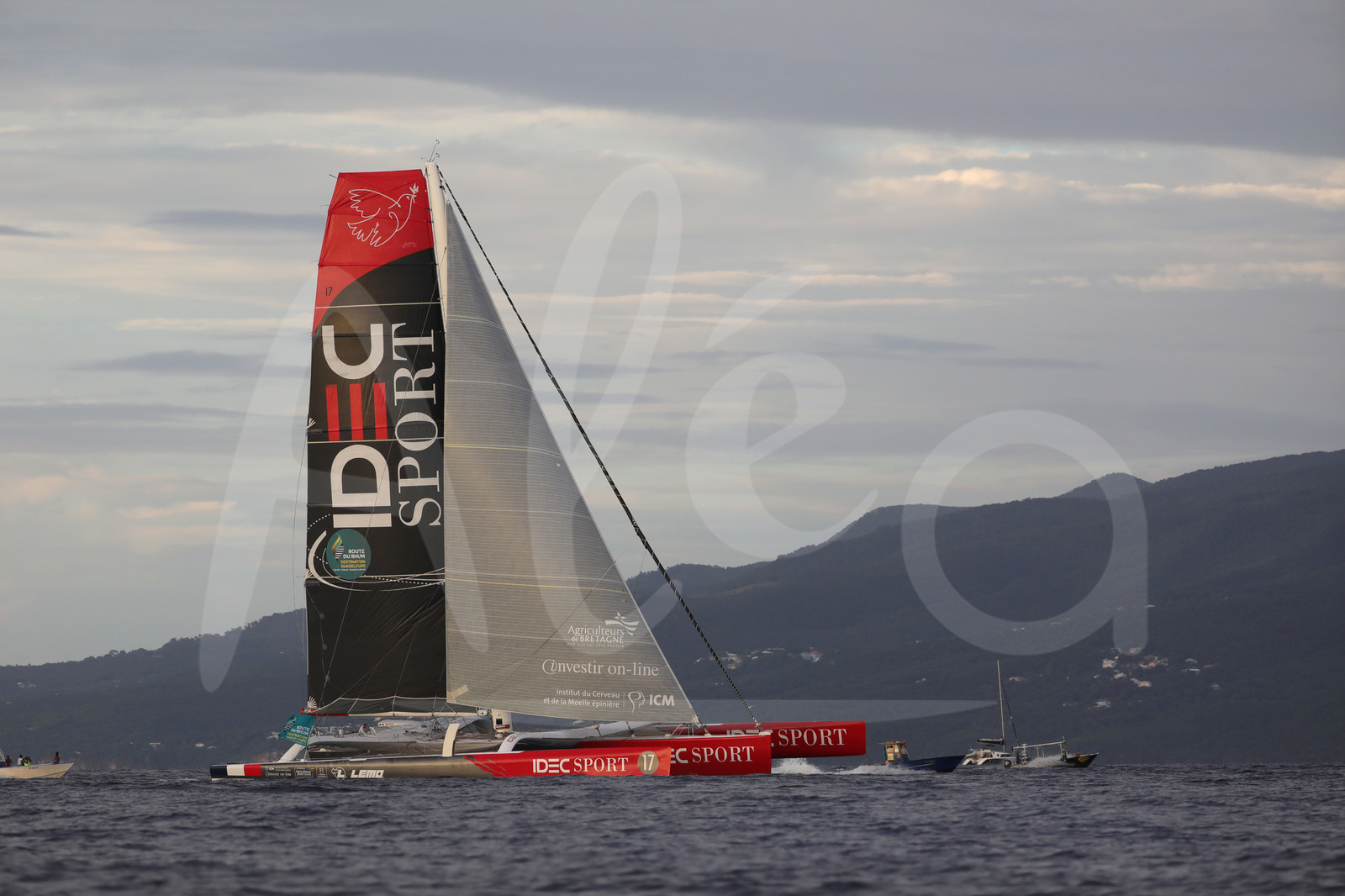 | Description | First images before finish for maxi trimaran IDEC Sport, skipper Francis Joyon, during arrival of the Route du Rhum 2018, on November 11th, 2018 in Pointe-a-Pitre, Guadeloupe, France - Photo Jean-Marie Liot / Alea |