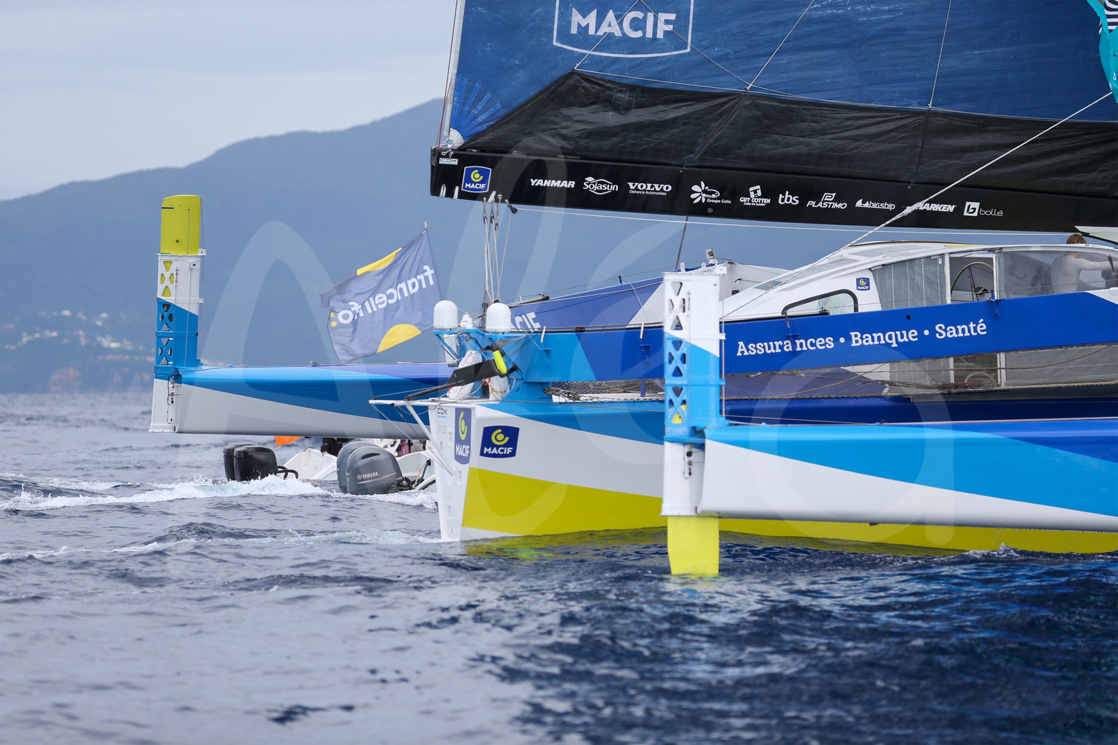 | Description | First images of the broken left rudder before finish for maxi trimaran MACIF, skipper Francois Gabart, 1st place during arrival of the Route du Rhum 2018, on November 11th, 2018 in Pointe-a-Pitre, Guadeloupe, France - Photo Jean-Marie Liot / Alea |