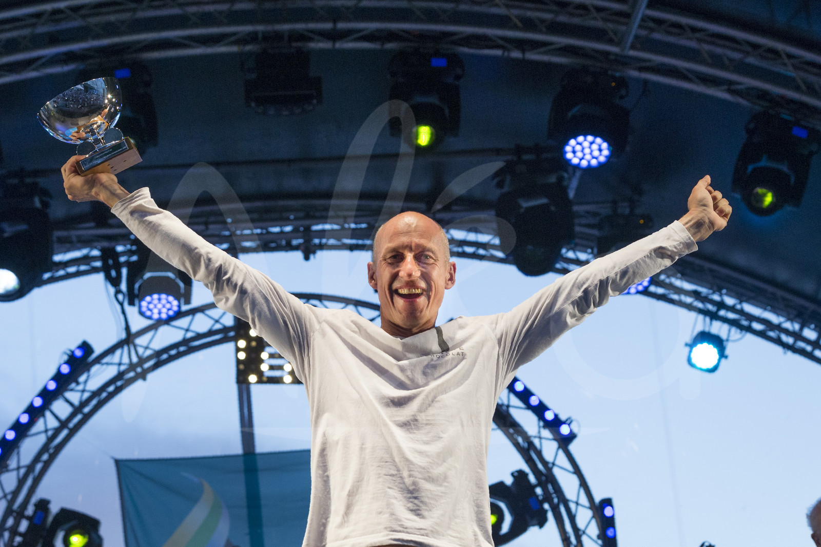 | Description | Category multi 50, trophy on podium for winner Reaute Chocolat, skipper Armel Tripon, third overall, during arrival of the Route du Rhum 2018, on November 15th, 2018 in Pointe-a-Pitre, Guadeloupe, France - Photo Jean-Marie Liot / Alea. |