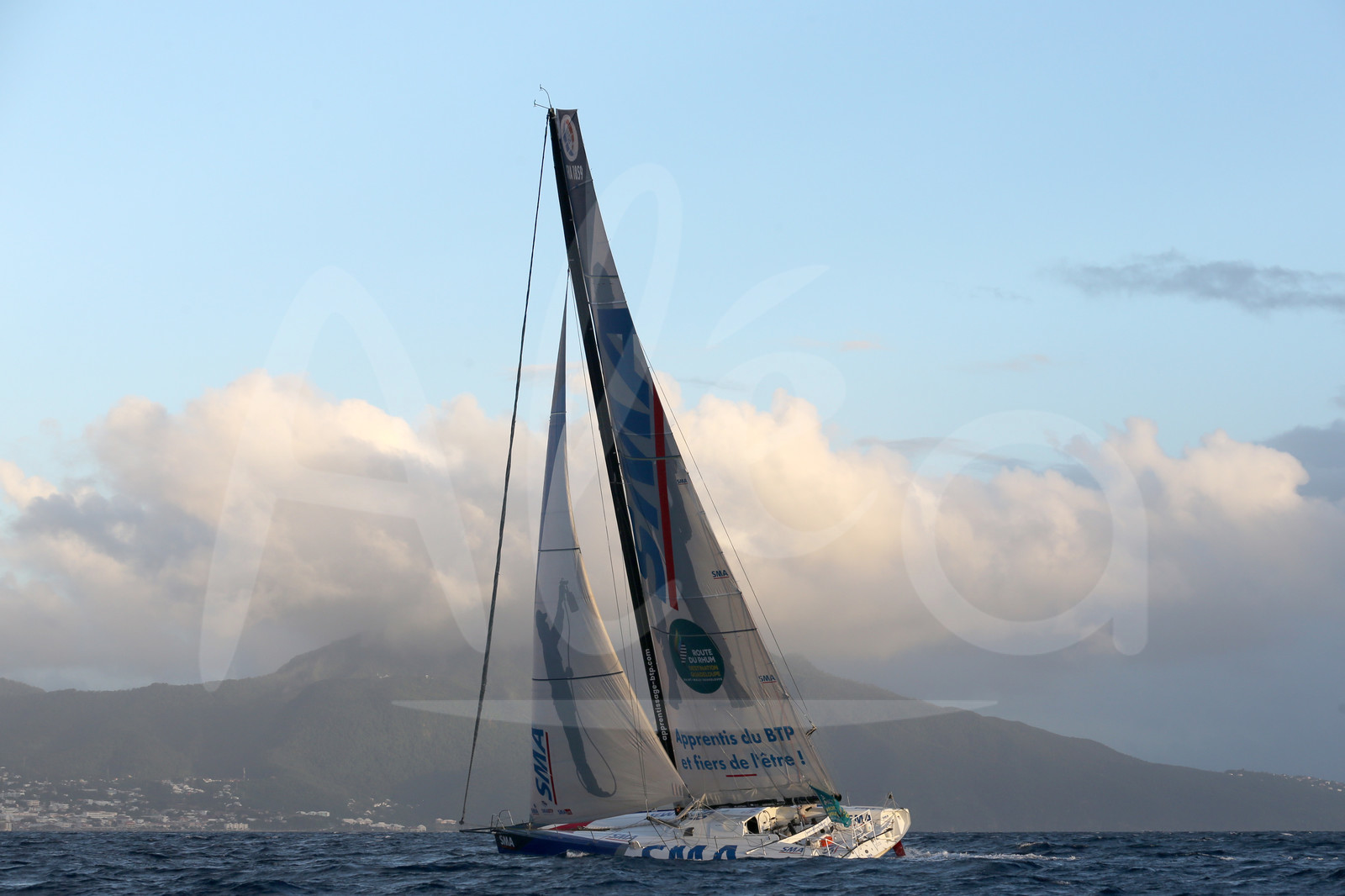 Description | Category imoca, SMA, skipper Paul Meilhat during arrival of the Route du Rhum 2018, on November 16th, 2018 in Pointe-a-Pitre, Guadeloupe, France - Photo Jean-Marie Liot / Alea |