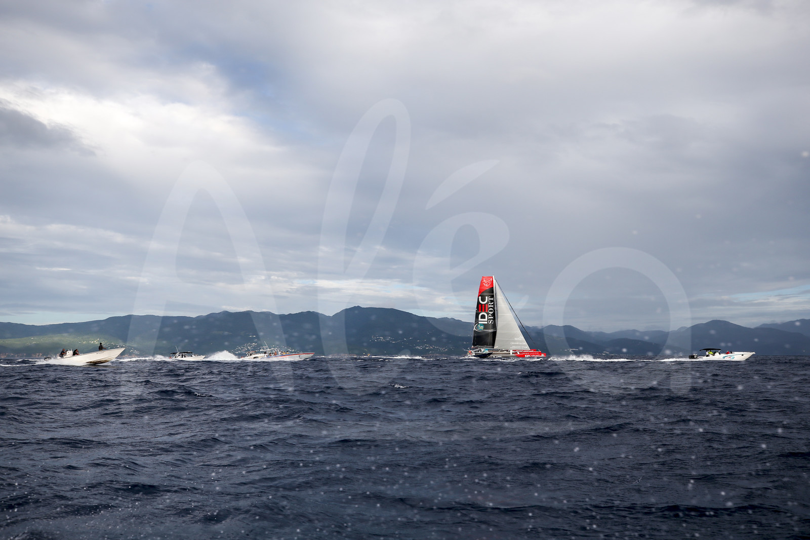 | Description | First images before finish for maxi trimaran IDEC Sport, skipper Francis Joyon, during arrival of the Route du Rhum 2018, on November 11th, 2018 in Pointe-a-Pitre, Guadeloupe, France - Photo Jean-Marie Liot / Alea |