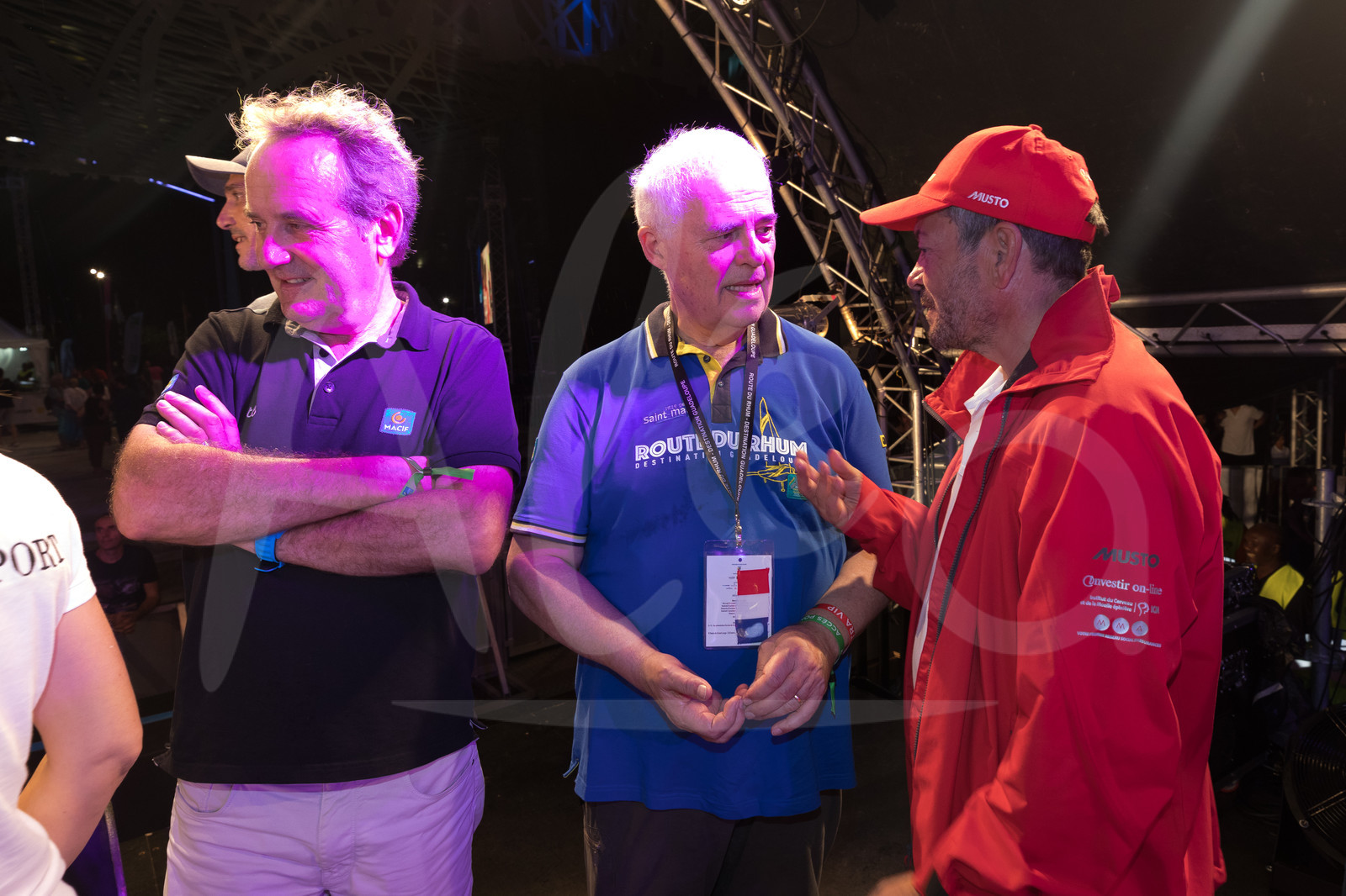 | Description | Celebration on podium for Patrice Lafargue (Groupe IDEC Pdt), sponsor of the winner maxi trimaran IDEC Sport, skipper Francis Joyon - new record in 7d 14h 21mn 47sec, with Saint Malo mayor and on the left, Jean-Baptiste Boucher, MACIF head of sponsoring, during arrival of the Route du Rhum 2018, on November 11th, 2018 in Pointe-a-Pitre, Guadeloupe, France - Photo Jean-Marie Liot / Alea |