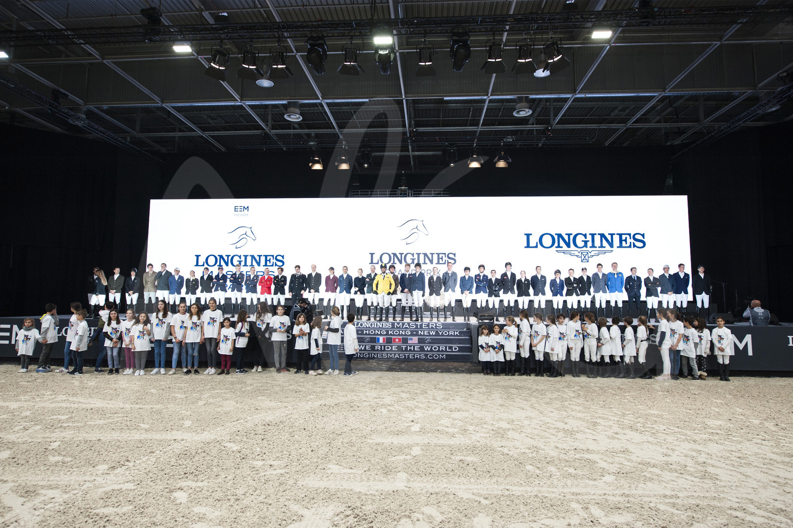 Description | Riders and kids on stage after the CSI5* - LONGINES GRAND PRIX at the Longines Masters Paris 2018, in Villepinte on December 2nd, 2018 - Photo Christophe Bricot / Alea / EEM |