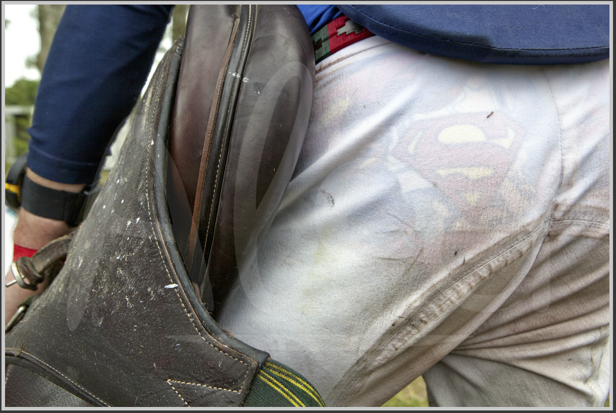 Description | Illustration du sous vêtement "jockey superman” lors du concours équestre Le Grand Complet - Photo Stéphane Allaman / Alea |