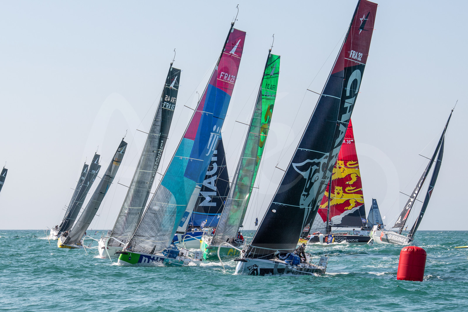 | Description | Jeremie BEYOU and Alan ROBERTS, skippers of Charal, 1st at buoy, during the Sardinha Cup 2019 Warm Up, in St Gilles Croix de Vie, France, on March 30th, 2019 - Photo Olivier Blanchet / Alea |