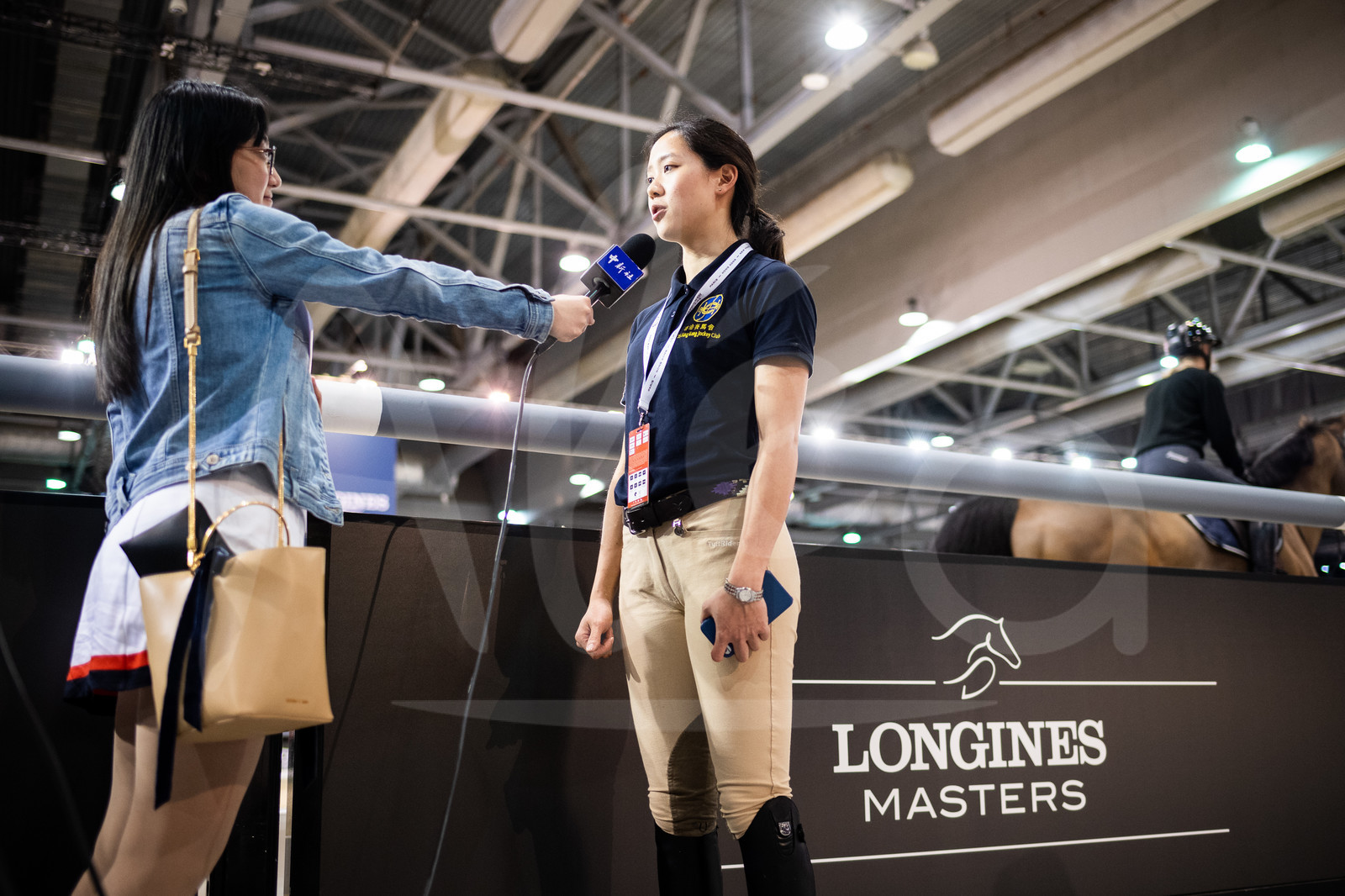 Description | Hong Kong rider Jacqueline Lai being interviewed by media during the Longines Masters Hong Kong 2019, at Asia World Expo on February 14th, 2019 - Photo Jean-Louis Carli / Alea / EEM |