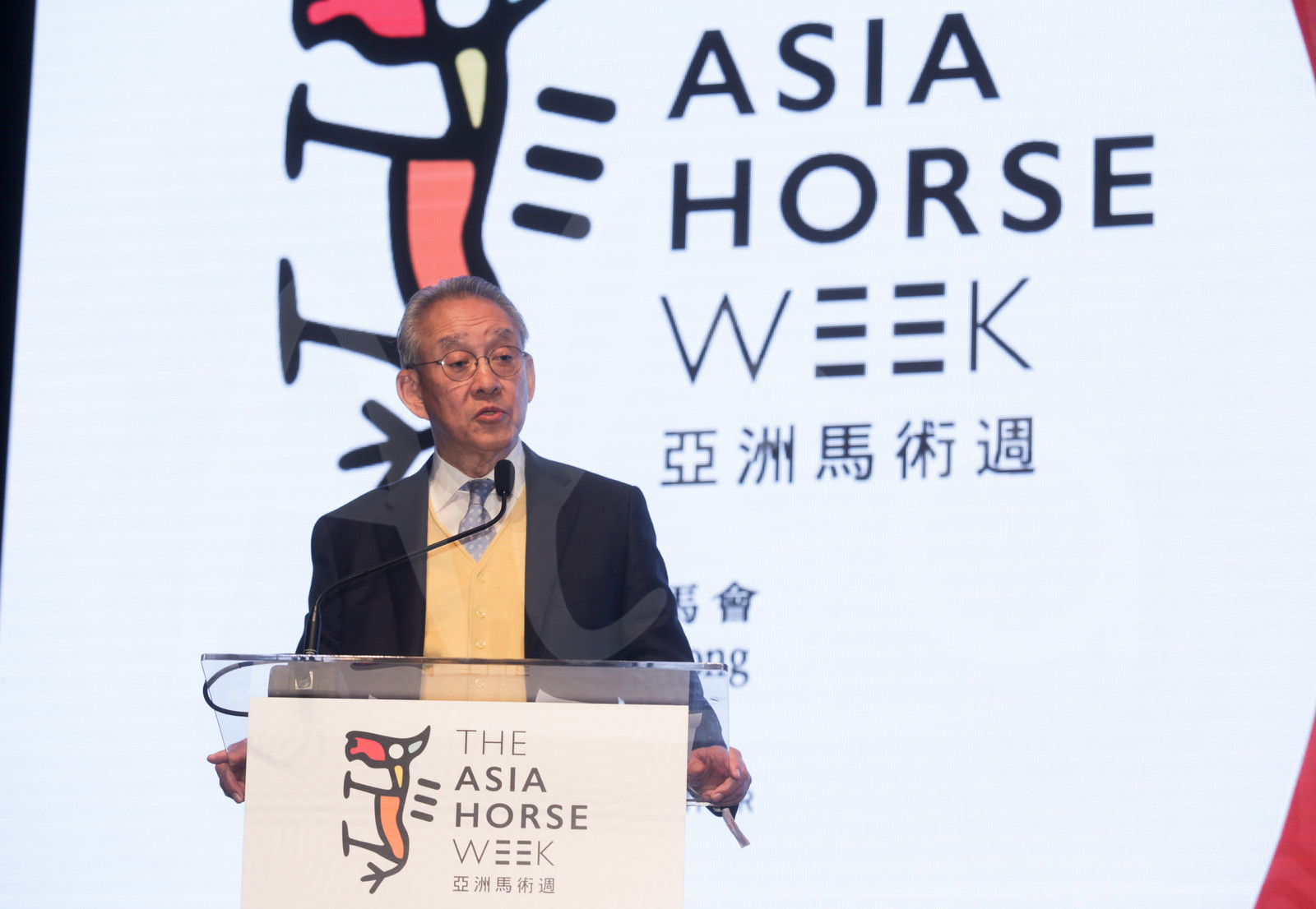 Description | Dr Anthony W K CHOW SBS JP, chairman Hong Kong Jockey Club, during the closing ceremony of the Asia Horse Week Day 2 at the Longines Masters Hong Kong 2019, at Asia World Expo on February 15th, 2019 - Photo Isaac Lawrence / Mazarine / EEM |