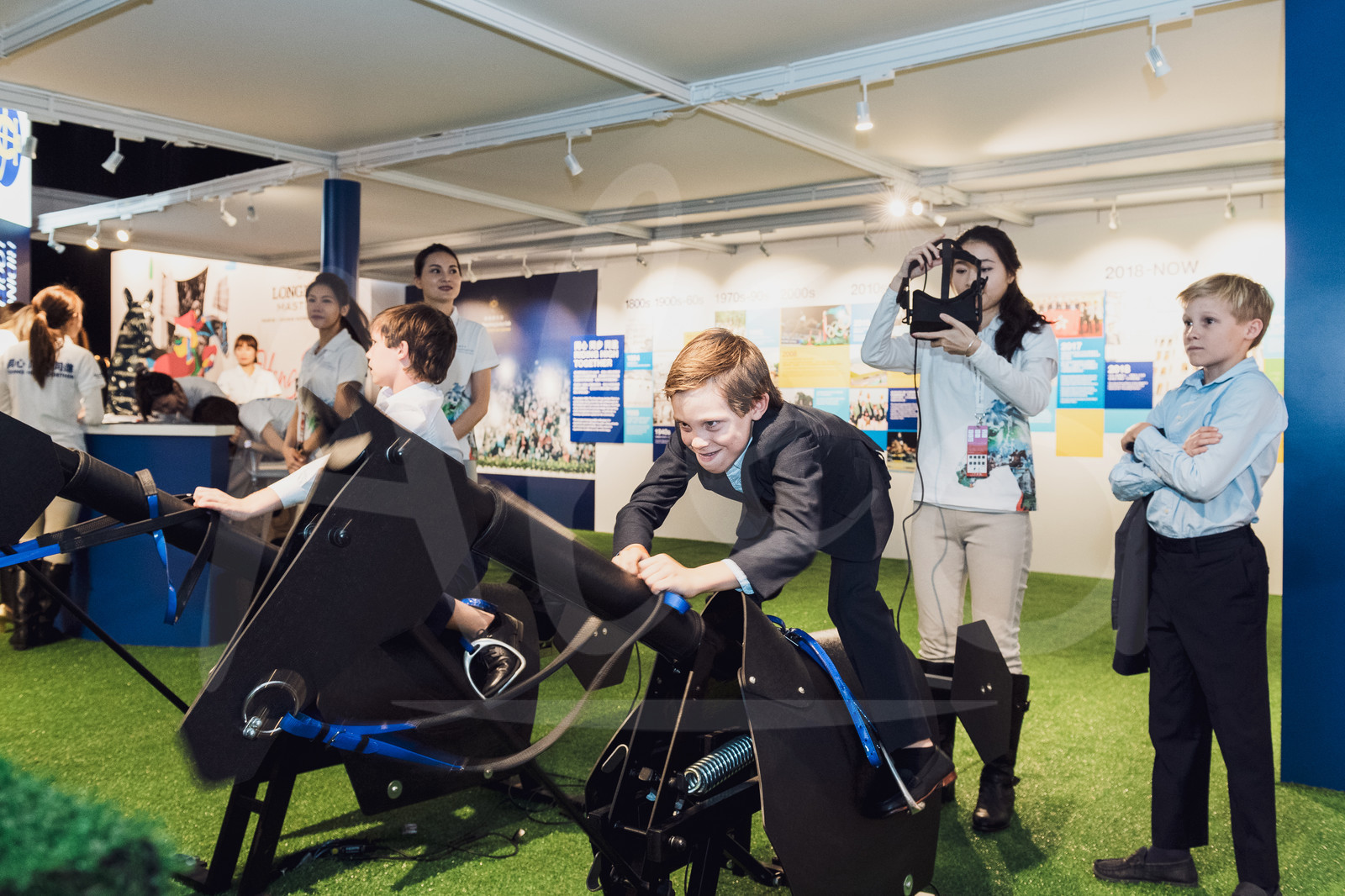 Description | HKJC booth virtual race illustration during the Hong Kong Jockey Club Trophy at the Longines Masters Hong Kong 2019, at Asia World Expo on February 15th, 2019 - Photo Jean-Louis Carli / Alea / EEM |