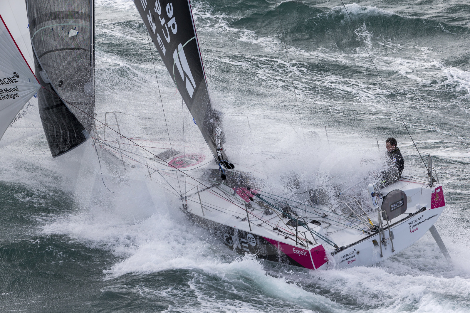 Description | Figaro 3 Bretagne CMB, skipper Espoir Tom Laperche with skipper Performance Loïs Berrehar, training off les Iles Glenan, on March 10th, 2019 - Photo Jean-Marie Liot / Alea. |