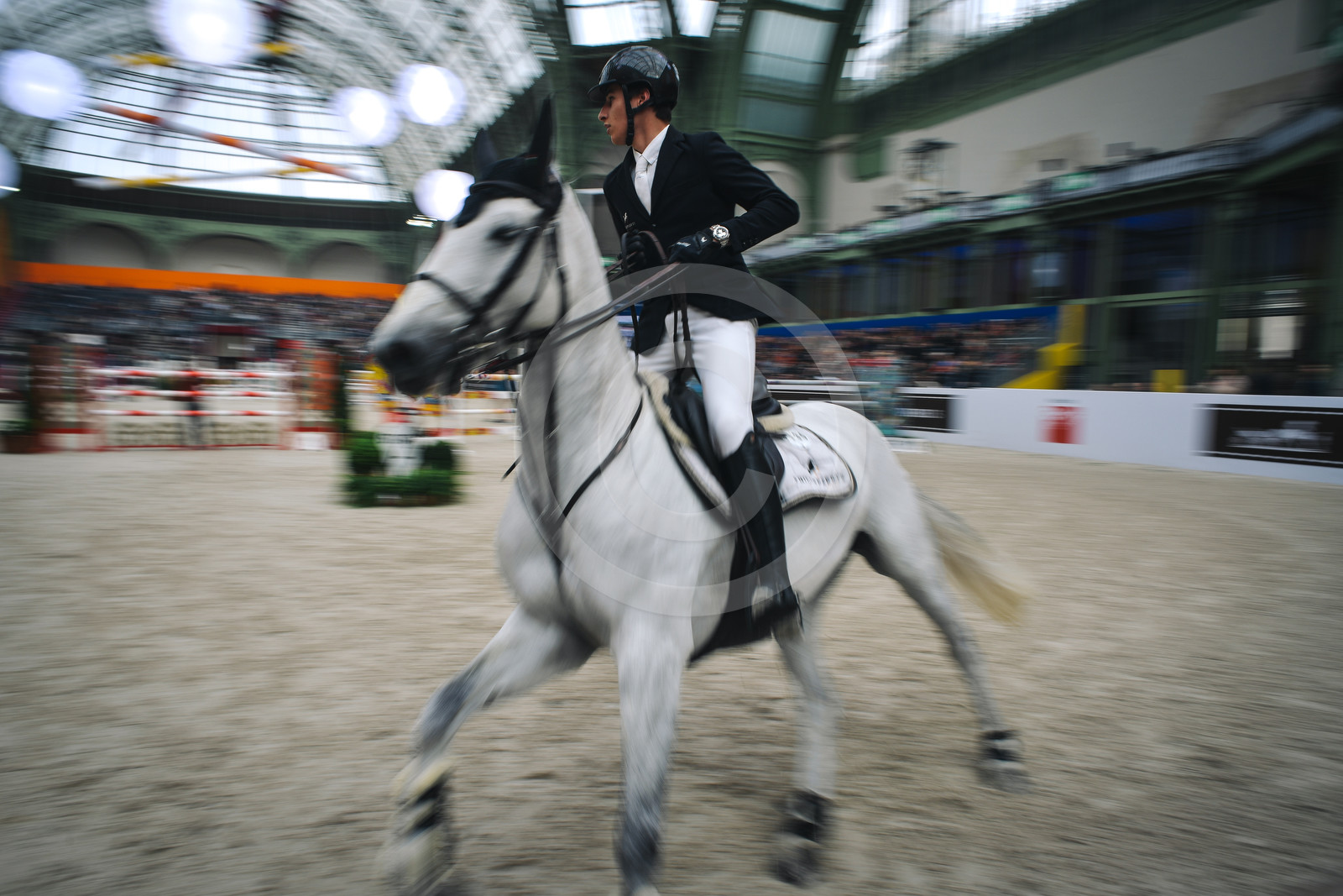 Description | Belgium's Anthony Philippaerts rides his horse All right du Genet as they compete in the "Talents d'Hermes" International Jumping Competition at the Grand Prix Hermes in the Grand Palais in Paris on March 24, 2019 - Photo Lucas Barioulet |