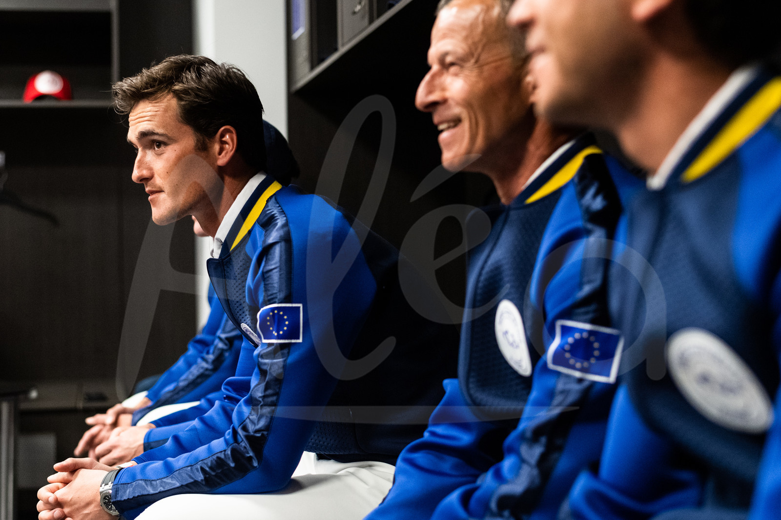 | Description | Official H&M suits for the Riders Masters Cup Team Europe, from left to right : SMOLDERS Harry, KENNY Darragh, PHILIPPAERTS, Olivier / BEL, SCHWIZER, Pius / SUI, LEVY, Edward / FRA, in the dressing room, at the Longines Masters New York 2019, at NYCB Live, home of the Nassau Veteran's Memorial Coliseum, on April 25th, 2019 - Photo Jean-Louis Carli / Alea / EEM |
