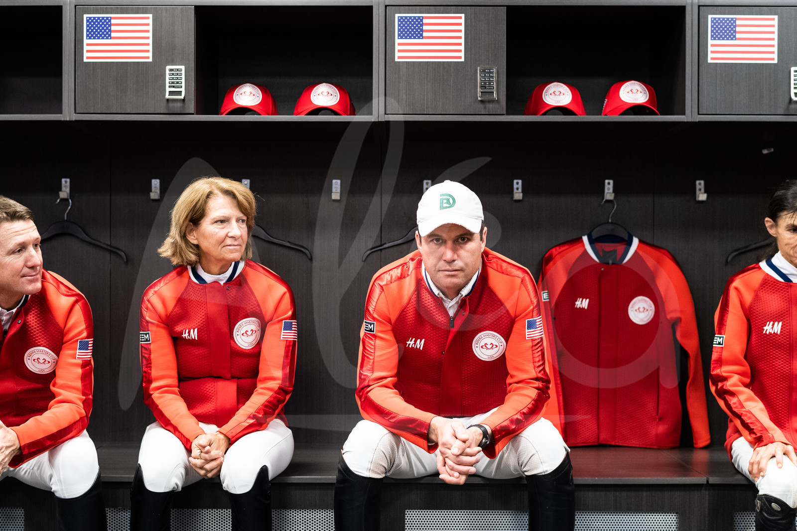 | Description | Official H&M suits for the Riders Masters Cup Team USA, from left to right : WARD Mclain, MADDEN Beezie, RYAN Devin, CHAPOT Laura, in the dressing room, at the Longines Masters New York 2019, at NYCB Live, home of the Nassau Veteran's Memorial Coliseum, on April 25th, 2019 - Photo Jean-Louis Carli / Alea / EEM |