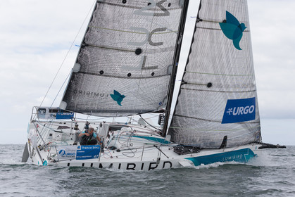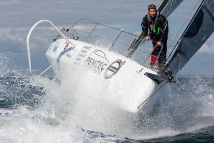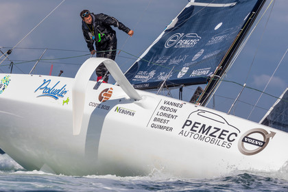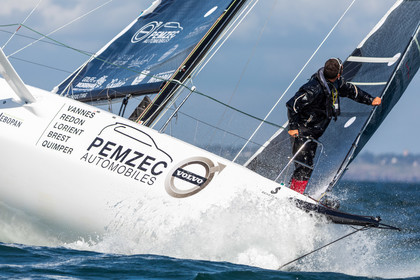Retrouvez les premières images d'entrainement des Figaro 3 de Michel Desjoyeaux sur Lumibird au large de Port La Foret, Benoit Hochart sur Team Benoit Hochart et Alexis Loison sur Region Normandie dans la baie de Quiberon.