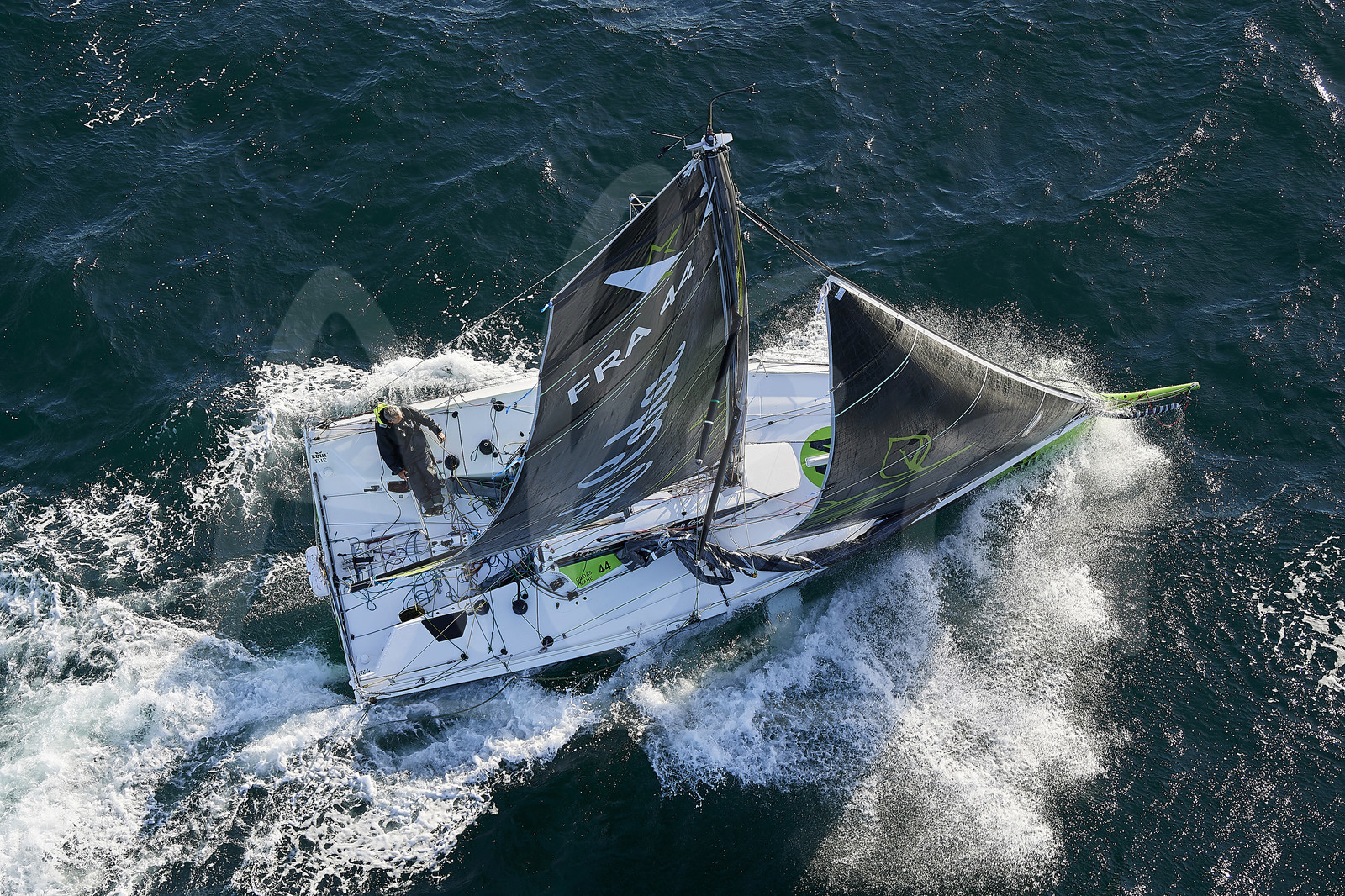 Description | BELLE-ILE, FRANCE - MAY 14 : French skipper Gildas Mahe and his Figaro 3 Breizh Cola - Equi'The, training for upcoming sailing races, on May 14, 2019 off Belle-Ile, France. (Photo by Yvan Zedda/Alea). |