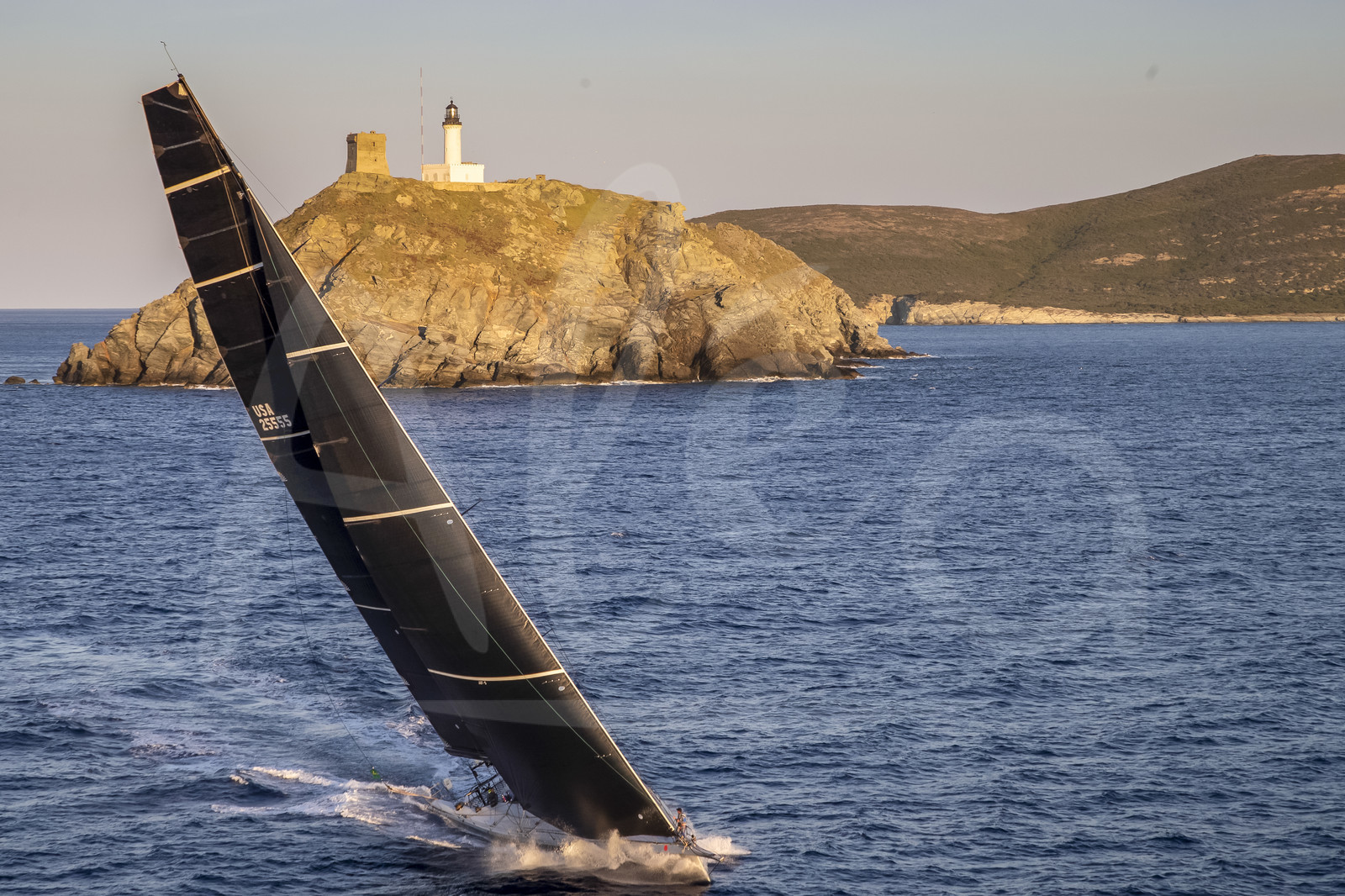 Description | CORSICA, FRANCE - JUNE 12, 2019 : RAMBLER 88 sails around the Giraglia Island, during the offshore Rolex Giraglia sailing race, on June 12, 2019, off Corsica, France. (Photo by Studio Borlenghi/ALeA). |