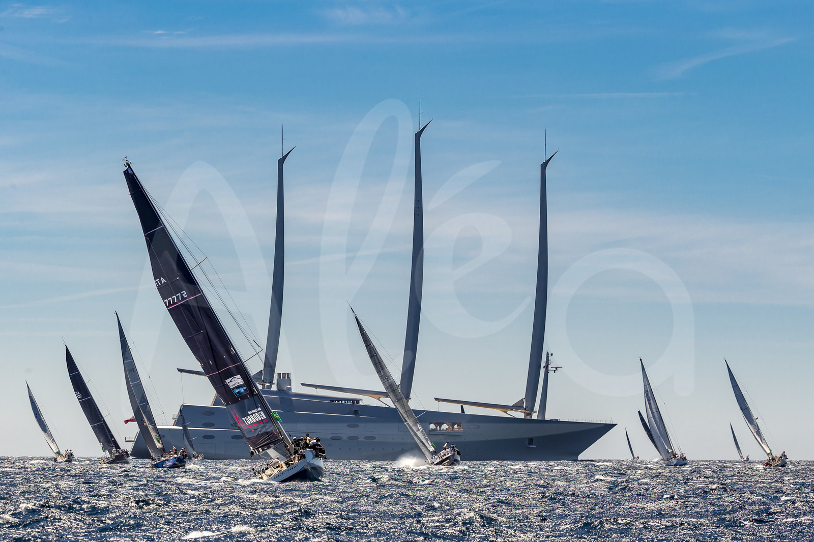 Description | SAINT-TROPEZ, FRANCE - JUNE 12, 2019 : Fleet and the "A" superyacht during the offshore race start at the Rolex Giraglia sailing race, on June 12, 2019, off Saint-Tropez, France. (Photo by Studio Borlenghi/ALeA). |