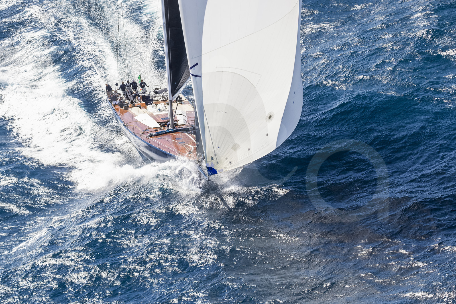 Description | SAINT-TROPEZ, FRANCE - JUNE 12, 2019 : MAGIC CARPET 3 from above during the offshore Rolex Giraglia sailing race, on June 12, 2019, off Saint-Tropez, France. (Photo by Studio Borlenghi/ALeA). |