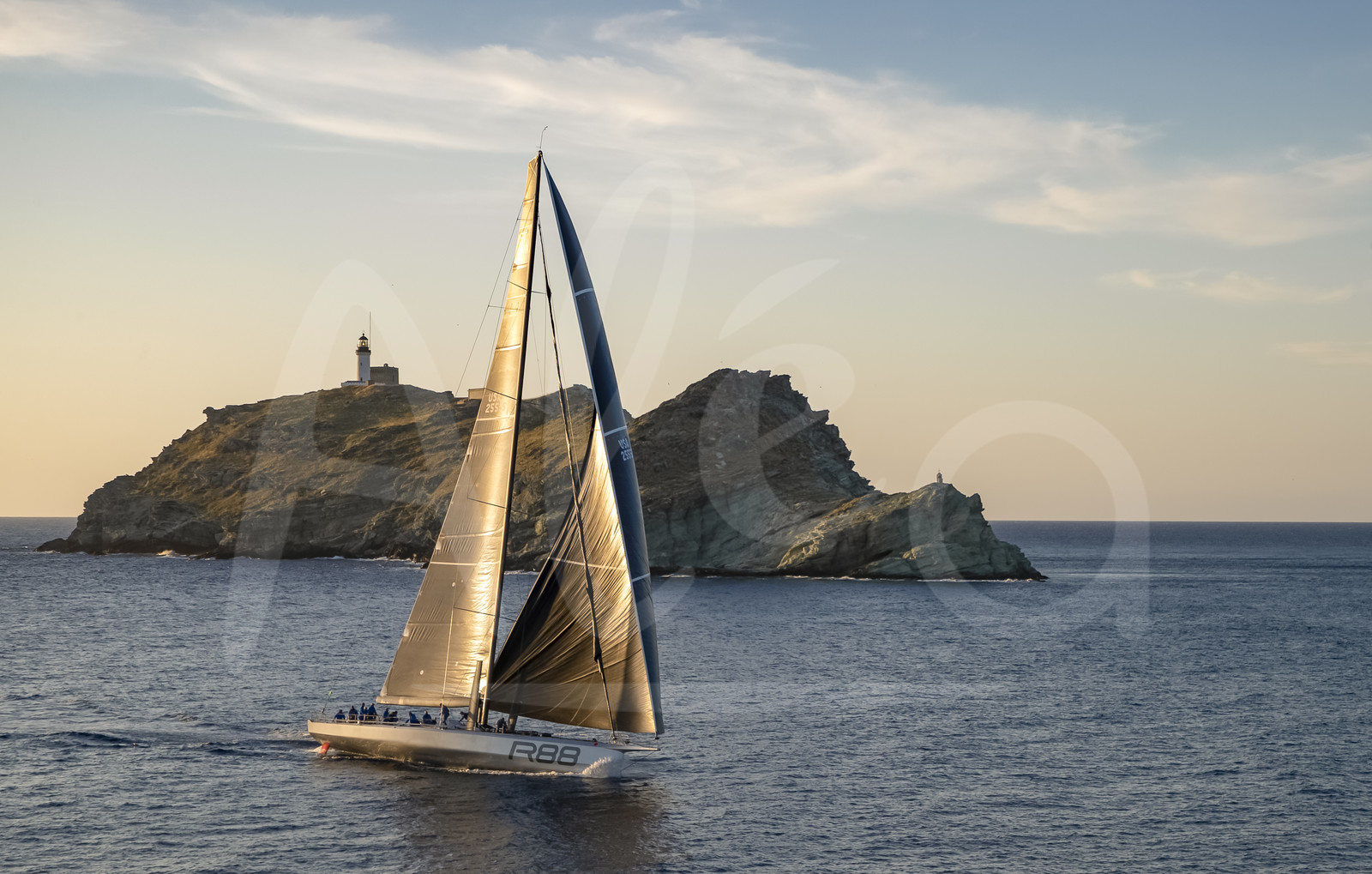 Description | CORSICA, FRANCE - JUNE 12, 2019 : RAMBLER 88 sails around the Giraglia Island, during the offshore Rolex Giraglia sailing race, on June 12, 2019, off Corsica, France. (Photo by Studio Borlenghi/ALeA). |