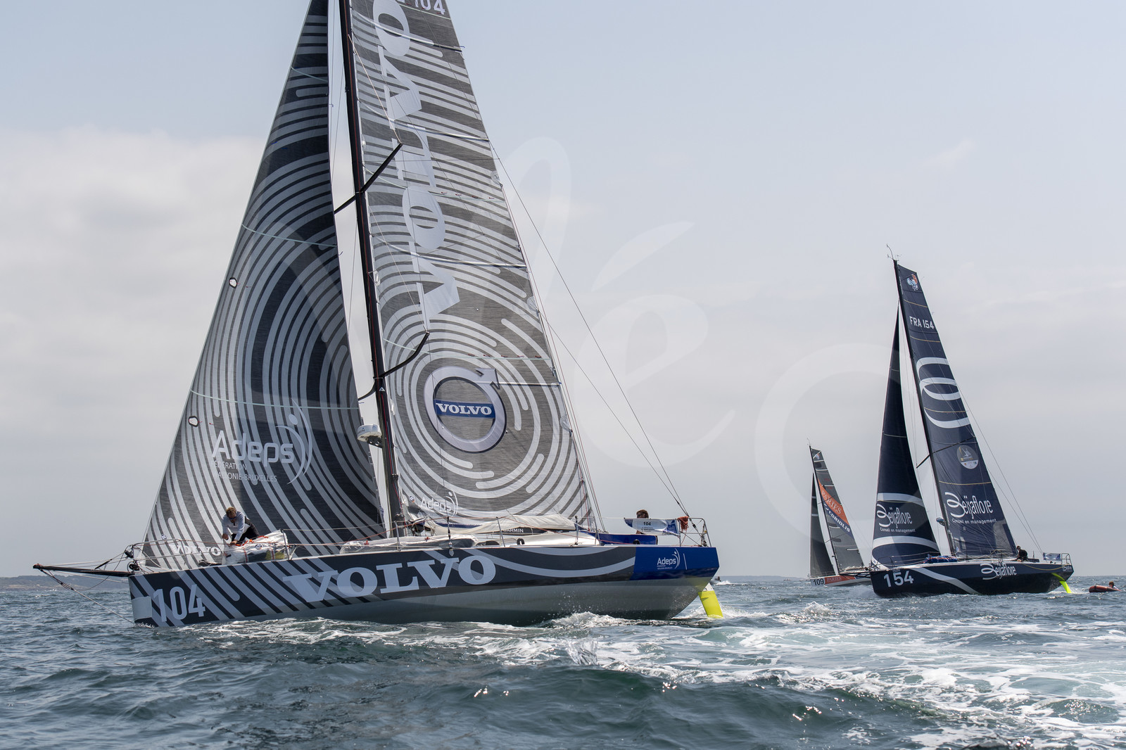 Description | LES SABLES D'OLONNE - JUNE 30, 2019 : Belgian skipper Jonas Gerckens, on Volvo, takes the start of the Class 40 sailing race in duo, Les Sables - Horta - Les Sables on June 30, 2019, off Les Sables d'Olonne, France. (Photo by Olivier Blanchet/Alea) |