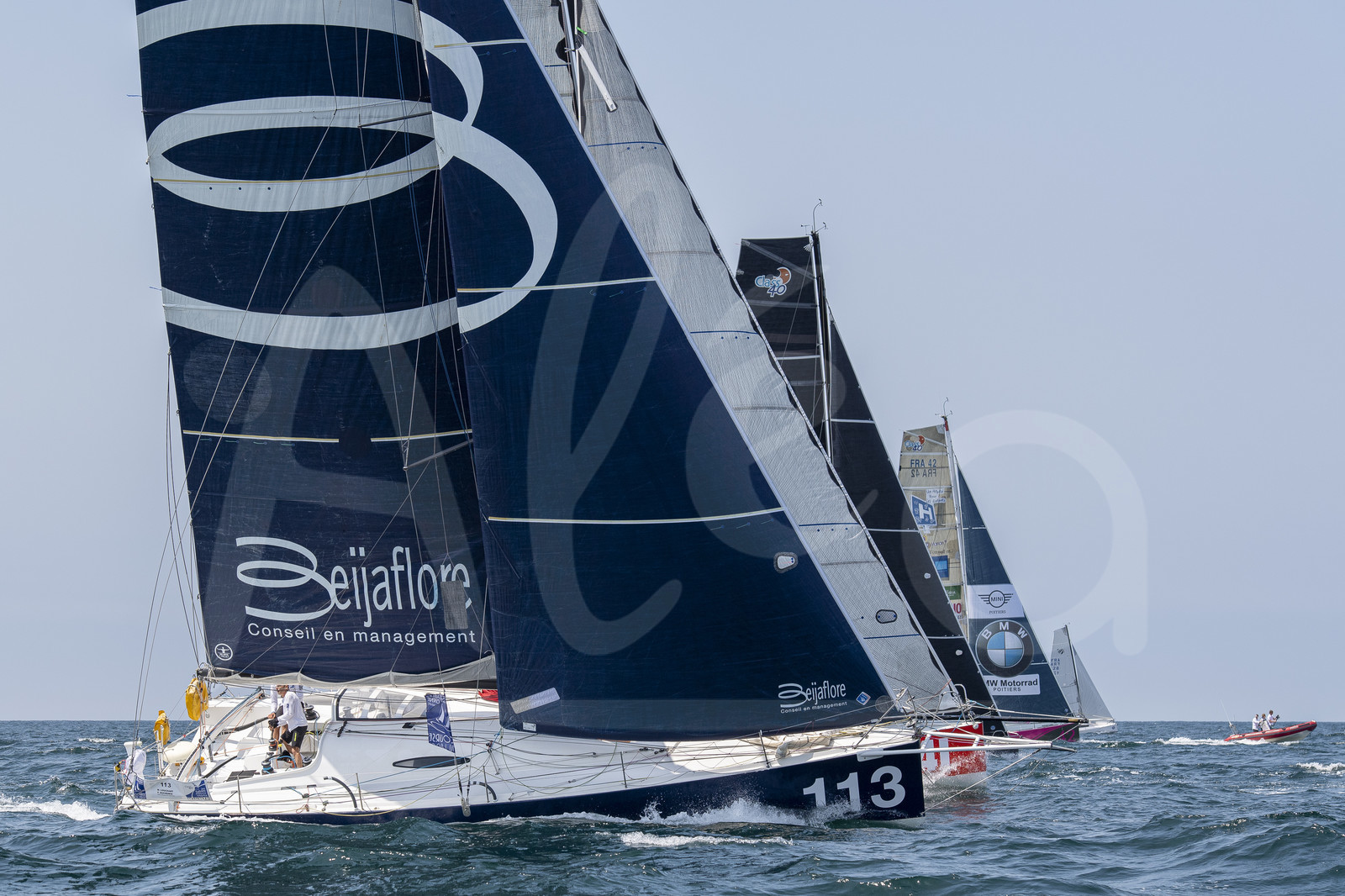 | Description | LES SABLES D'OLONNE - JUNE 30, 2019 : French skipper Martin Louchart, on Des voiles et Martin, takes the start of the Class 40 sailing race in duo, Les Sables - Horta - Les Sables on June 30, 2019, off Les Sables d'Olonne, France. (Photo by Olivier Blanchet/Alea) |