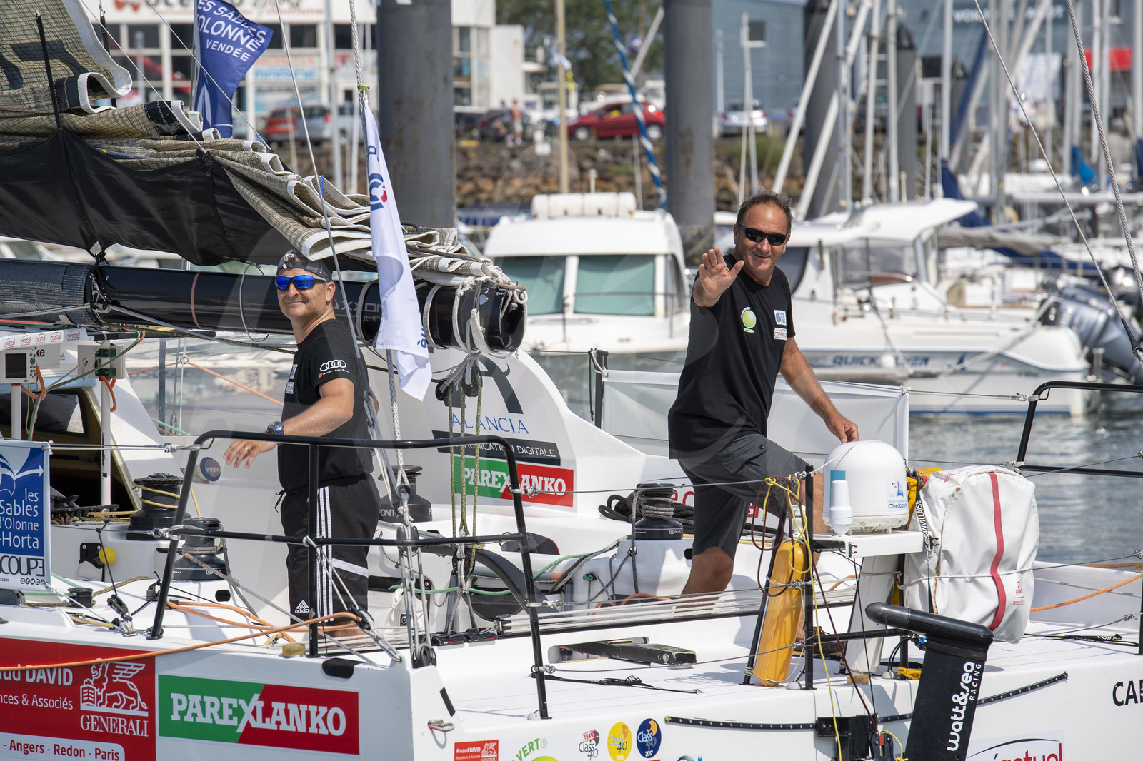 Description | LES SABLES D'OLONNE - JUNE 30, 2019 : Vincent Leblay and Bertrand De Broc, French skippers of Cré'actuel, is waiting for the start of the Class 40 sailing race in duo, Les Sables - Horta - Les Sables on June 30, 2019, off Les Sables d'Olonne, France. (Photo by Olivier Blanchet/Alea) |