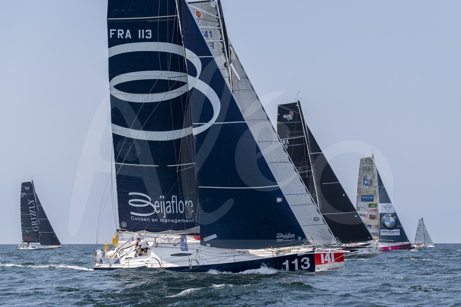 Description | LES SABLES D'OLONNE - JUNE 30, 2019 : French skipper Martin Louchart, on Des voiles et Martin, takes the start of the Class 40 sailing race in duo, Les Sables - Horta - Les Sables on June 30, 2019, off Les Sables d'Olonne, France. (Photo by Olivier Blanchet/Alea) |