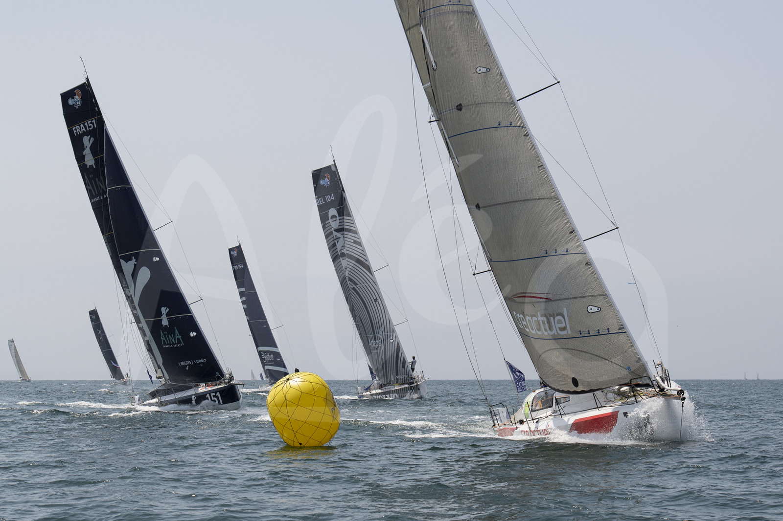 Description | LES SABLES D'OLONNE - JUNE 30, 2019 : French skippers Vincent Leblay and Bertrand De Broc, on Cré'actuel, takes the start of the Class 40 sailing race in duo, Les Sables - Horta - Les Sables on June 30, 2019, off Les Sables d'Olonne, France. (Photo by Olivier Blanchet/Alea) |