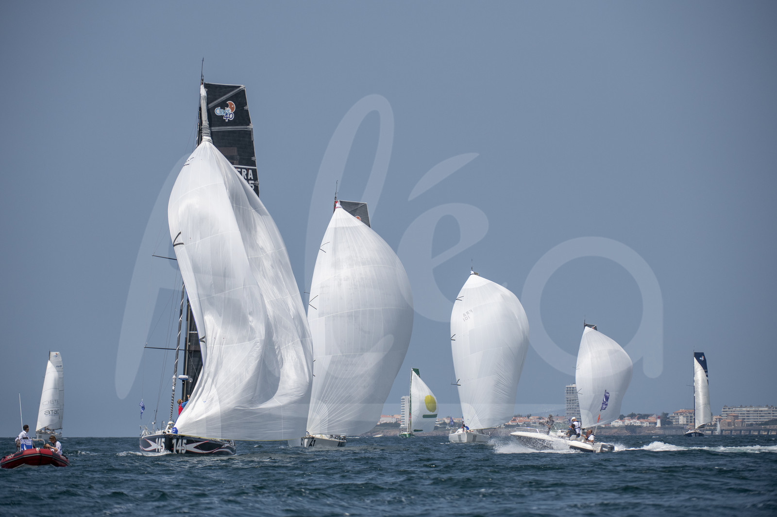 Description | LES SABLES D'OLONNE - JUNE 30, 2019 : The fleet takes the start of the Class 40 sailing race in duo, Les Sables - Horta - Les Sables on June 30, 2019, off Les Sables d'Olonne, France. (Photo by Olivier Blanchet/Alea) |