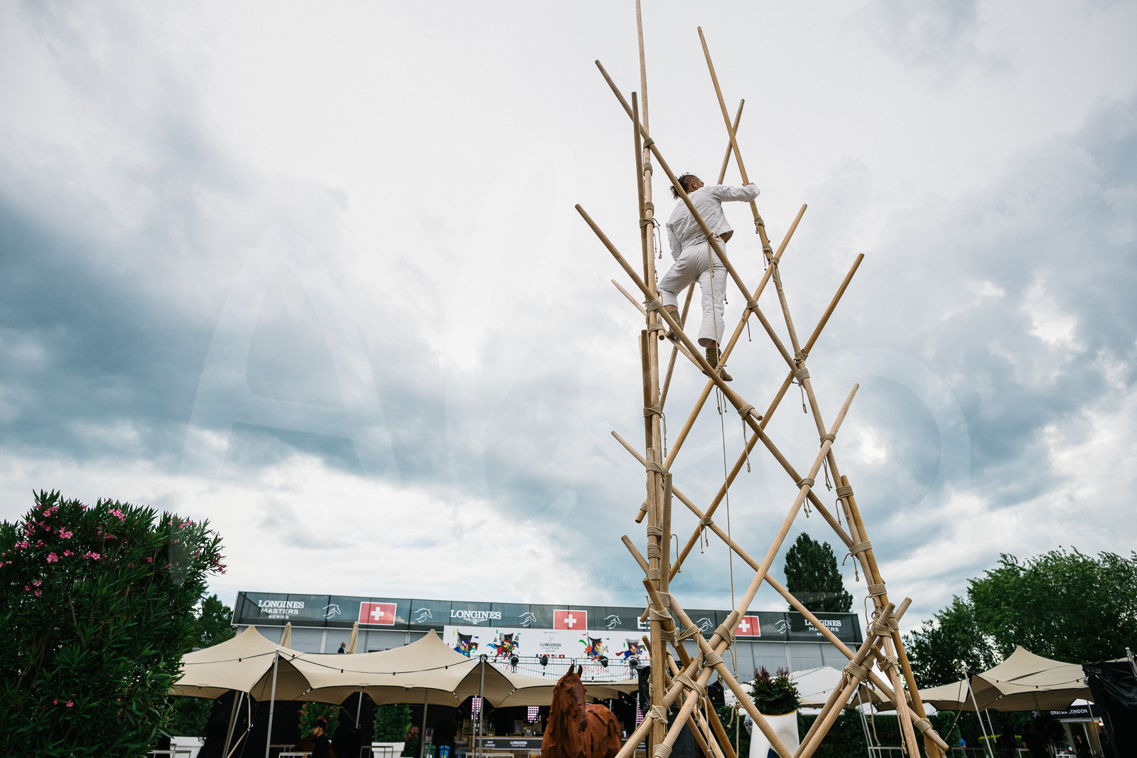 Description | LAUSANNE, SWITZERLAND - JUNE 22, 2019 : Live performance with giant sticks by artist Heinz Baut in the Village Prestige at the Longines Masters Lausanne, on June 22, 2019 in Lausanne, Switzerland. (Photo by Jean-Louis Carli/ALeA/EEM). |