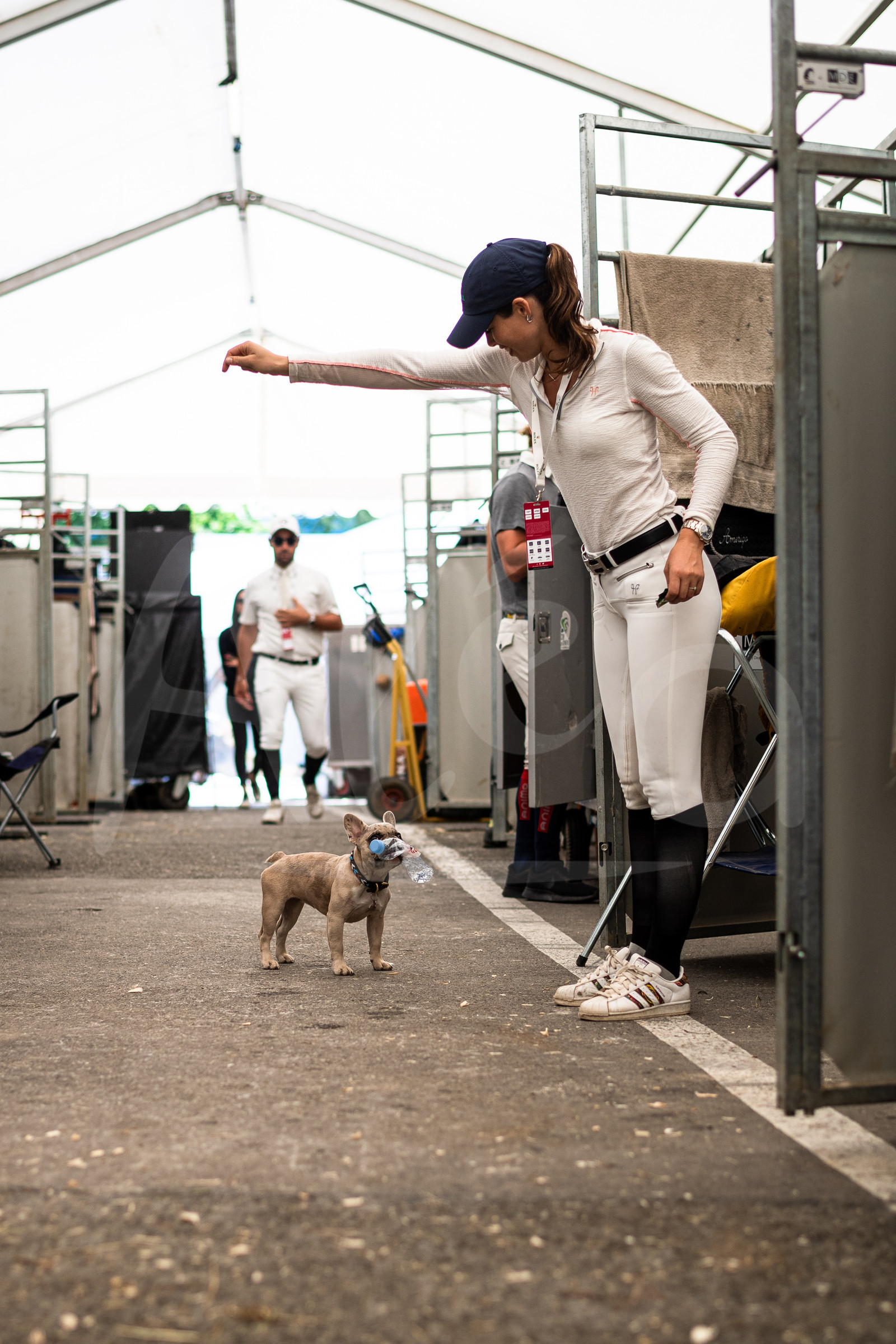 Description | LAUSANNE, SWITZERLAND - JUNE 20, 2019 : Ambiance Fanny Skalli with her dog in the stables at Longines Masters Lausanne, on June 20, 2019 in Lausanne, Switzerland. (Photo by Jean-Louis Carli/ALeA/EEM) |
