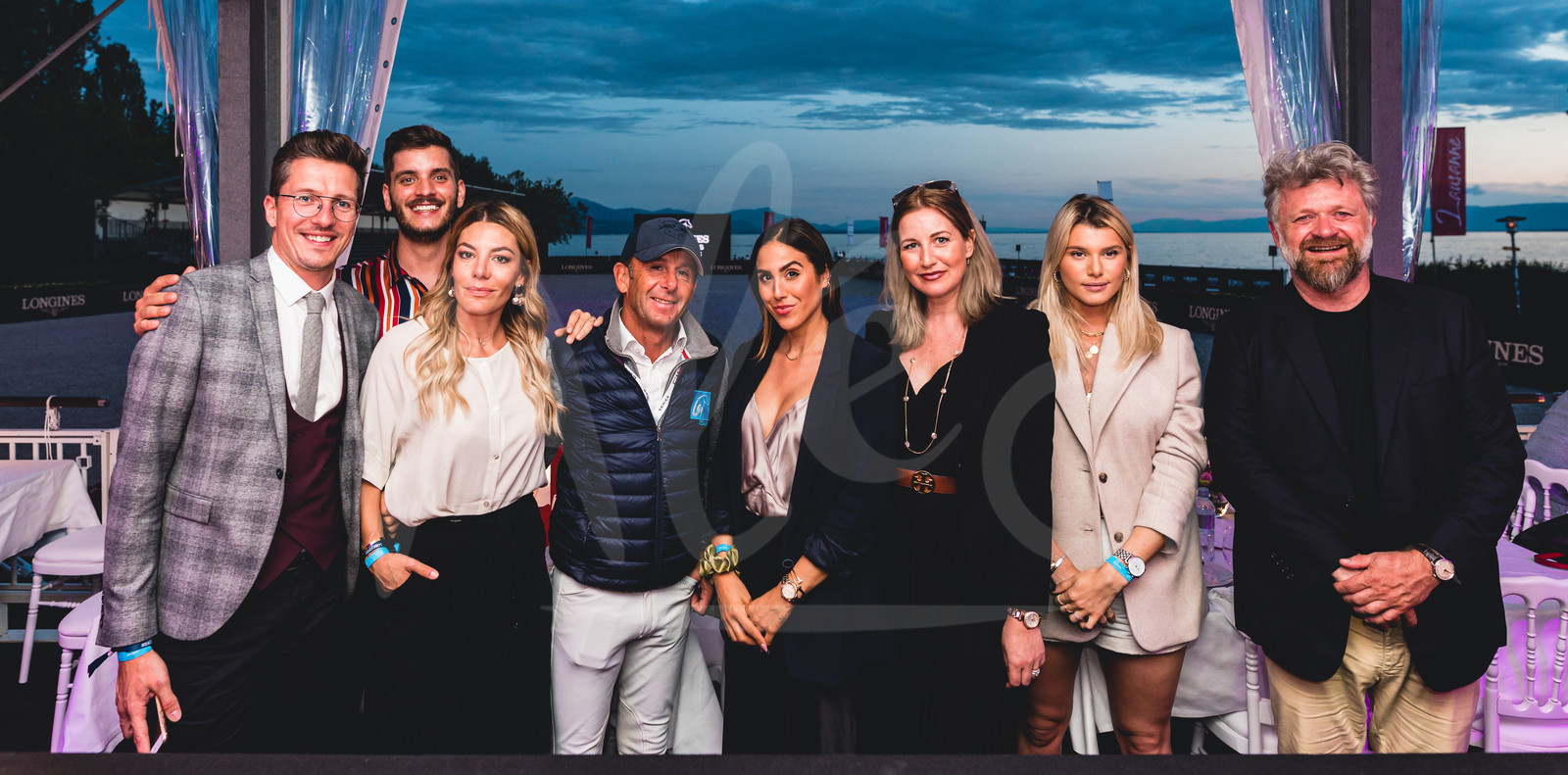 Description | LAUSANNE, SWITZERLAND - JUNE 22, 2019 : From left to right : influencers Francois Matthey, Ken Moos, Harmonie Matthey, French rider Philippe Rozier, Alison Liaudat, Florence Jacquinot, Era Dyla Hill, Christophe Ameeuw (PDG EEM) prior to the Longines Speed Challenge at the Longines Masters Lausanne, on June 22, 2019 in Lausanne, Switzerland. (Photo by Alexis Anice/ALeA/EEM) |