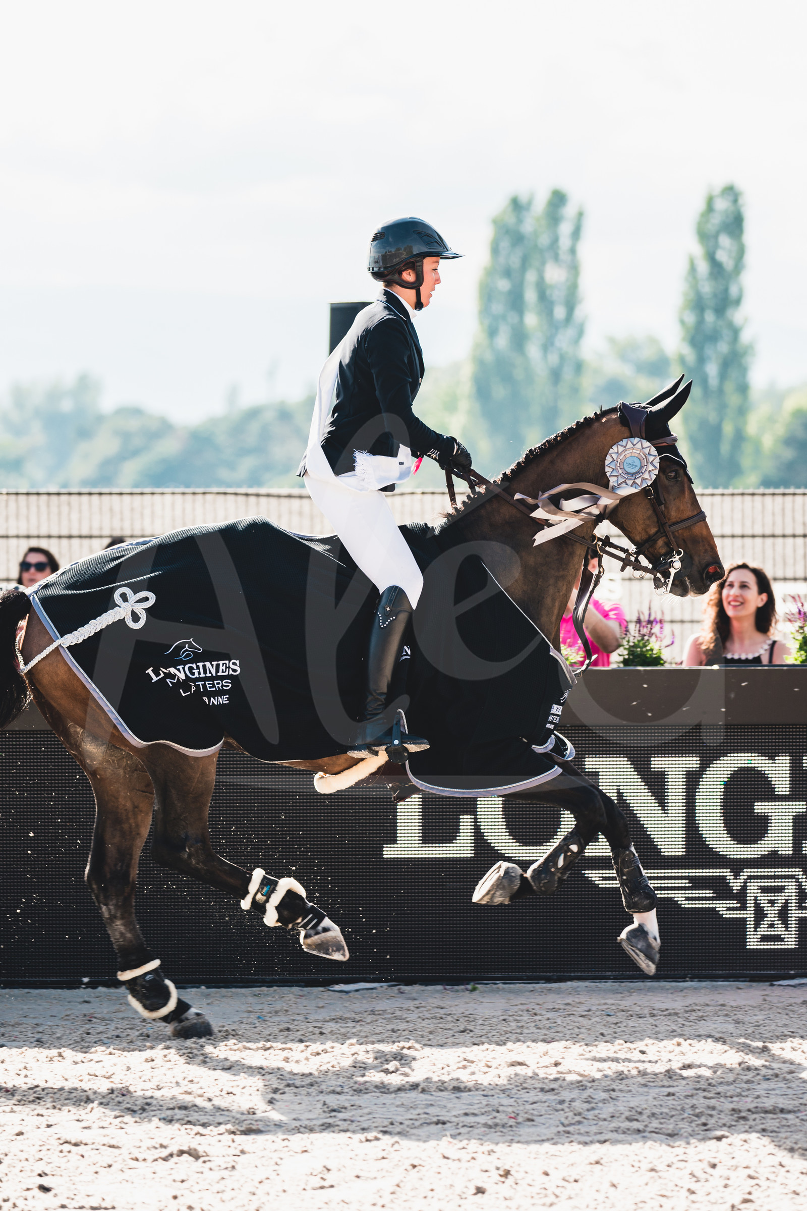 Description | LAUSANNE, SWITZERLAND - JUNE 23, 2019 : Celebration for German rider Gudrun Patteet during the Longines Grand Prix of Lausanne, holds the trophy at the Longines Masters Lausanne, on June 23, 2019 in Lausanne, Switzerland. (Photo by Jean-Louis Carli/ALeA/EEM). |