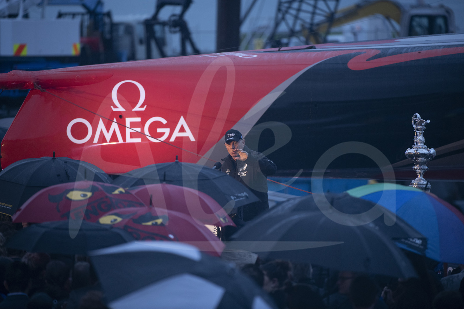 Description | AUCKLAND, NEW ZEALAND - SEPTEMBER 06: Emirates Team New Zealand CEO Grant Dalton talks to Team and guests at the christening of the new ETNZ boat named Te Aihe, on September 06, 2019 in Auckland, New Zealand. It was the first AC75 launched by any of the five teams that will be involved in the 2021 Americas Cup in Auckland. (Photo by Chris Cameron/Alea) |