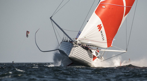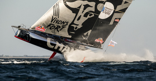 Sélection de photos parmi les plus impressionnantes des foilers Imoca participant aux runs de vitesse du Défi Azimut 2019 au large de Lorient