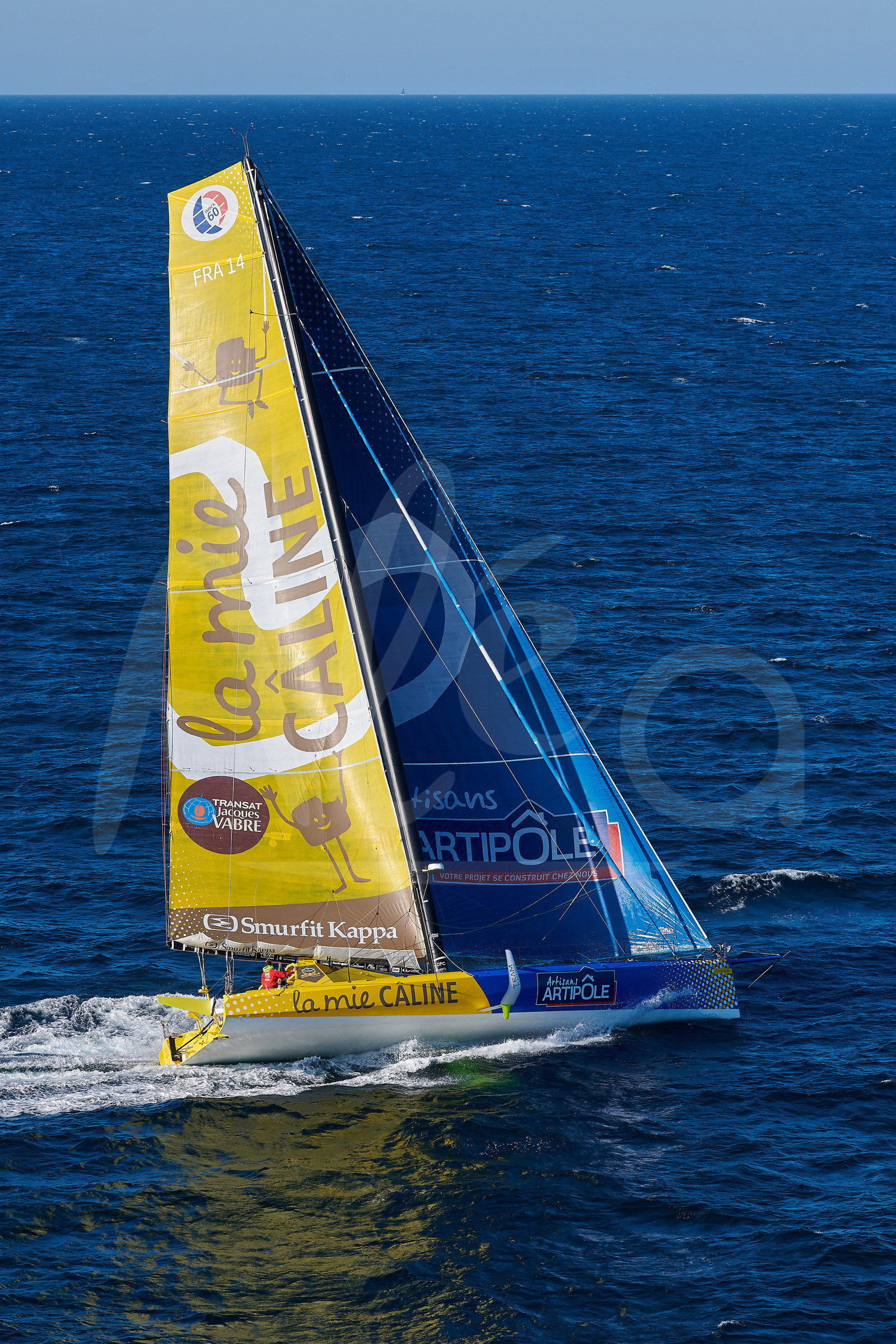 Description | OFF LORIENT, FRANCE - SEPTEMBER 19: French skippers Arnaud Boissieres and Xavier Macaire are training on the Imoca La Mie Caline - Artipole, prior to the Transat Jacques Vabre, sailing race in duo from Le Havre to Bahia, on September 19, 2019 off Lorient, France. (Photo by Yvan Zedda/Alea) |