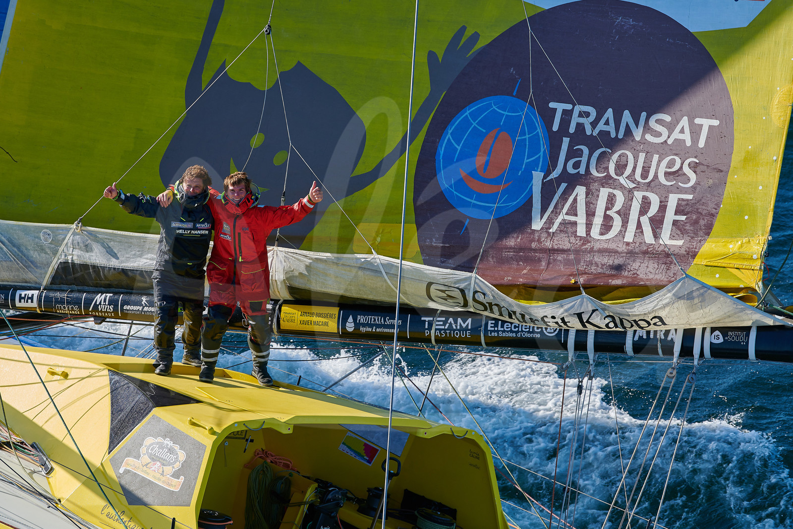 Description | OFF LORIENT, FRANCE - SEPTEMBER 19: French skippers Arnaud Boissieres and Xavier Macaire are training on the Imoca La Mie Caline - Artipole, prior to the Transat Jacques Vabre, sailing race in duo from Le Havre to Bahia, on September 19, 2019 off Lorient, France. (Photo by Yvan Zedda/Alea) |