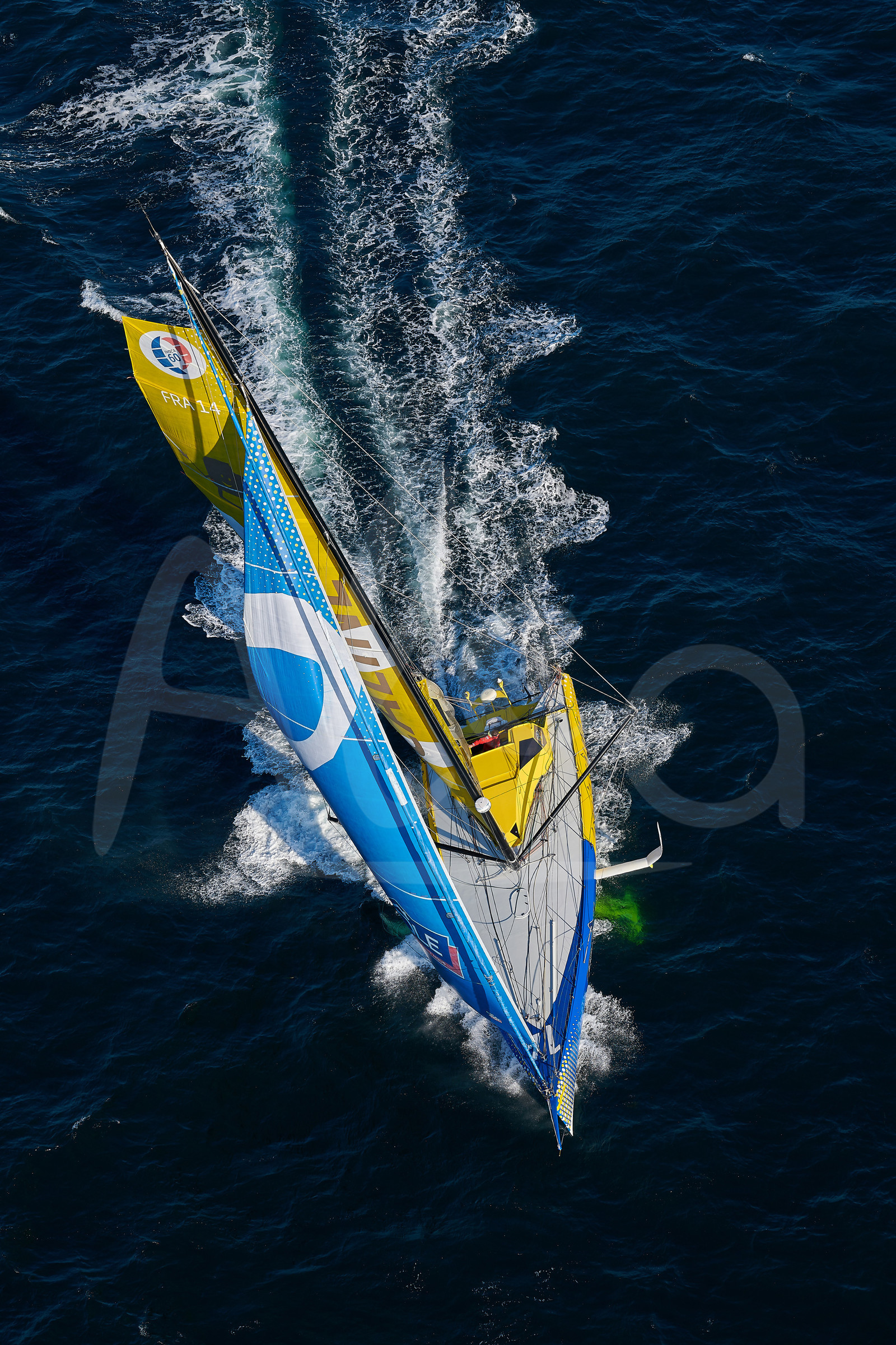 Description | OFF LORIENT, FRANCE - SEPTEMBER 19: French skippers Arnaud Boissieres and Xavier Macaire are training on the Imoca La Mie Caline - Artipole, prior to the Transat Jacques Vabre, sailing race in duo from Le Havre to Bahia, on September 19, 2019 off Lorient, France. (Photo by Yvan Zedda/Alea) |