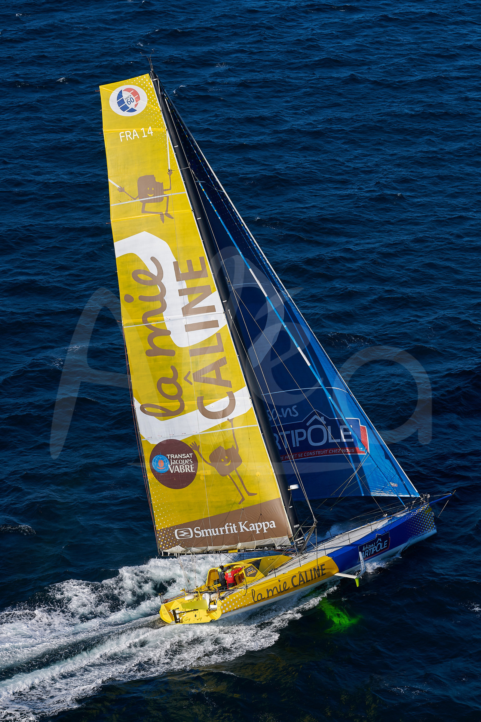 Description | OFF LORIENT, FRANCE - SEPTEMBER 19: French skippers Arnaud Boissieres and Xavier Macaire are training on the Imoca La Mie Caline - Artipole, prior to the Transat Jacques Vabre, sailing race in duo from Le Havre to Bahia, on September 19, 2019 off Lorient, France. (Photo by Yvan Zedda/Alea) |