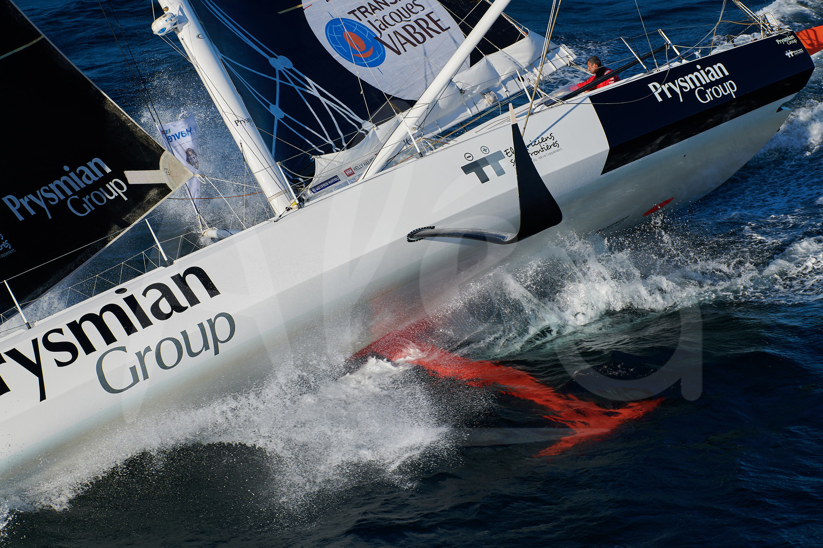 Description | OFF LORIENT, FRANCE - SEPTEMBER 19: Italian skipper Giancarlo Pedote and French Anthony Marchand are training on the Imoca Prysmian Group, prior to the Transat Jacques Vabre, sailing race in duo from Le Havre to Bahia, on September 19, 2019, off Lorient, France. (Photo by Yvan Zedda/Alea) |