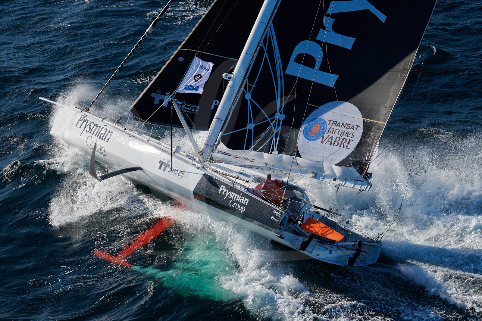 Description | OFF LORIENT, FRANCE - SEPTEMBER 19: Italian skipper Giancarlo Pedote and French Anthony Marchand are training on the Imoca Prysmian Group, prior to the Transat Jacques Vabre, sailing race in duo from Le Havre to Bahia, on September 19, 2019, off Lorient, France. (Photo by Yvan Zedda/Alea) |