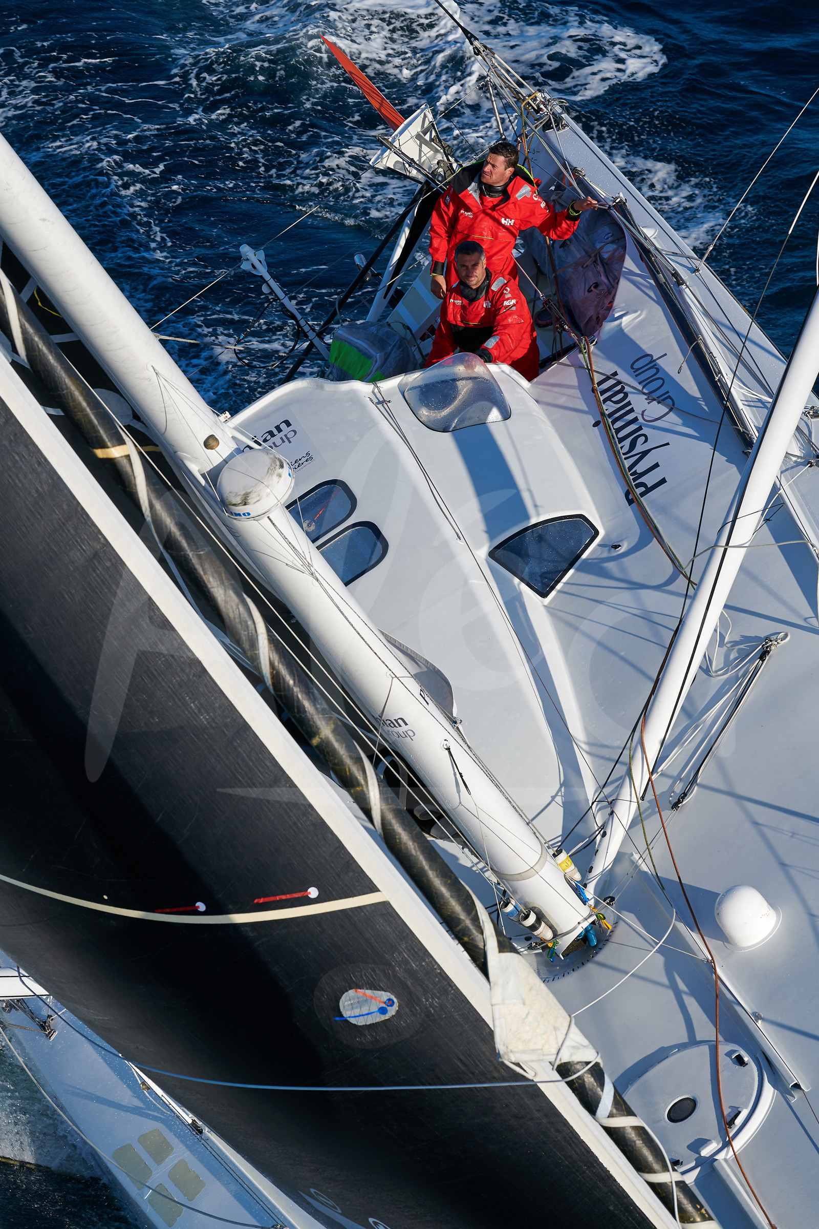 Description | OFF LORIENT, FRANCE - SEPTEMBER 19: Italian skipper Giancarlo Pedote and French Anthony Marchand are training on the Imoca Prysmian Group, prior to the Transat Jacques Vabre, sailing race in duo from Le Havre to Bahia, on September 19, 2019, off Lorient, France. (Photo by Yvan Zedda/Alea) |