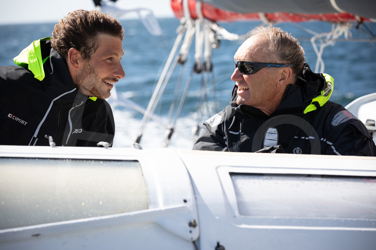Description | OFF BELLE-ILE EN MER, FRANCE - SEPTEMBER 18: French skipper Francis Joyon is training onboard the Maxi Trimaran IDEC Sport with his crew, prior to their Asian Tour next winter on September 18, 2019, off Belle-Ile en Mer, France. Here Francis Joyon with crew member Corentin Joyon. (Photo by Jean-Marie Liot/Alea) |