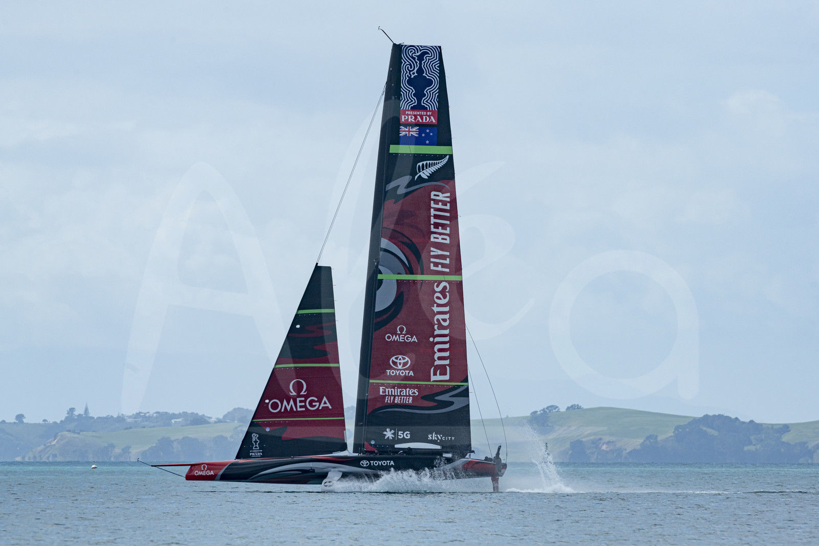 Description | AUCKLAND, NEW ZEALAND - OCTOBER 4: Emirates Team New Zealand is testing their AC75 foiling monohull "The Aihe"on the Hauraki Gulf off Auckland, on October 4, 2019. ETNZ is training for the America's Cup 2021. (Photo by Chris Cameron/Alea) |